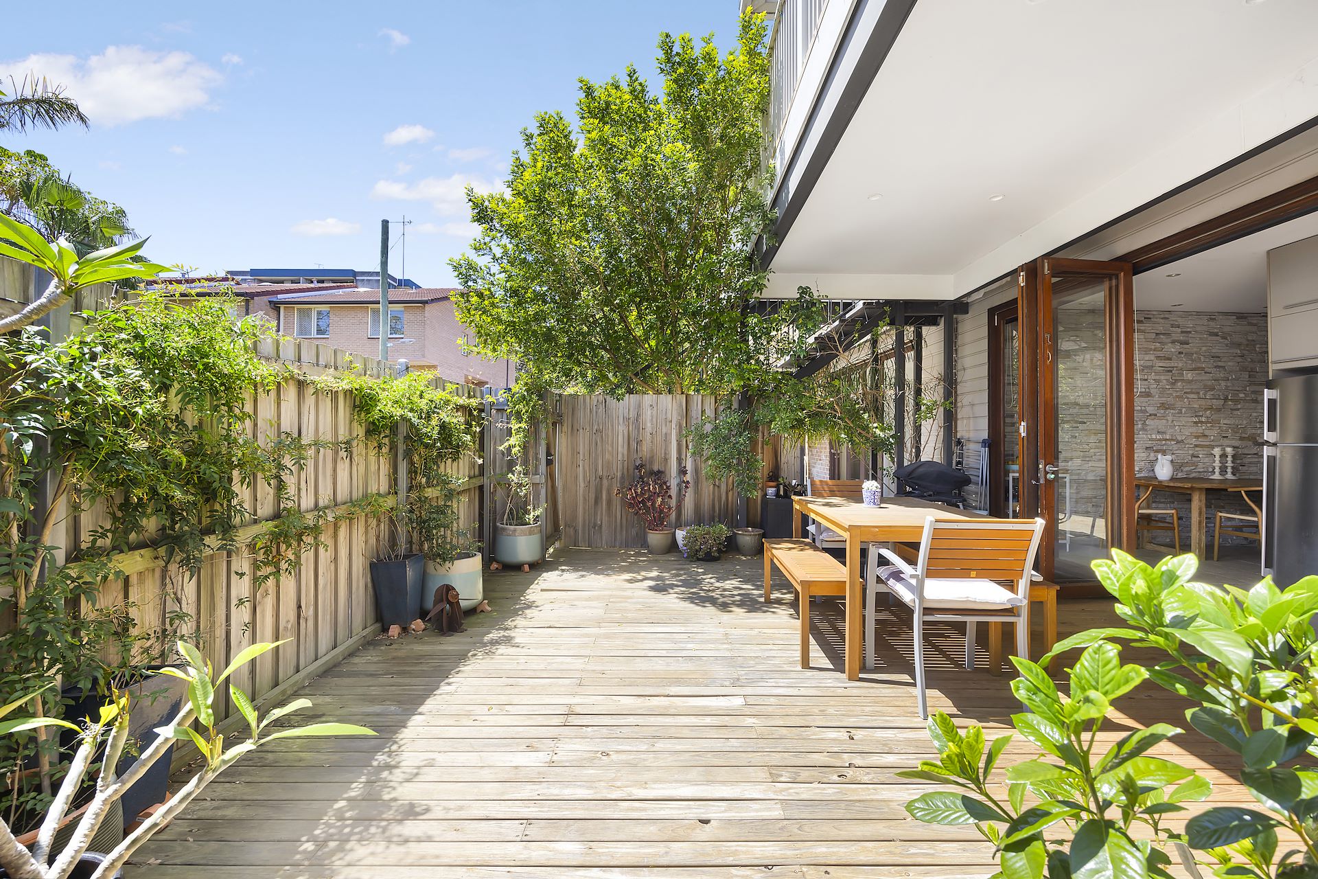 Nestled in the heart of Bondi Junction this exceptional oversized two bedroom apartment is more like a semi with a large back garden and parking for two cars. One of the standout features of this apartment is the north-facing garden. Step outside onto a spacious deck surrounded by lush greenery, creating a peaceful retreat right at your doorstep. Whether you're enjoying your morning coffee or hosting a gathering with friends, this garden space provides a perfect balance of serenity and urban living. - Generous interiors feature lofty ornate ceilings, picture rails, timber floors, stained glass windows - 2 bedrooms, both with built-ins; main with enclosed sunroom - Bathroom with shower / bath - Separate internal laundry - Large living room with separate dining room - Renovated kitchen with stone benchtops, gas cooktop and dishwasher opens through bi-fold doors to sunny north facing courtyard - Lock-up garage with additional off street car space. Residents of this oversized apartment benefit from the proximity to Bondi Junction's shopping and dining precincts, as well as easy access to public transportation hubs, making it an ideal residence for those seeking a convenient lifestyle while savouring the tranquillity of your own private haven in this remarkable Bondi Junction apartment.