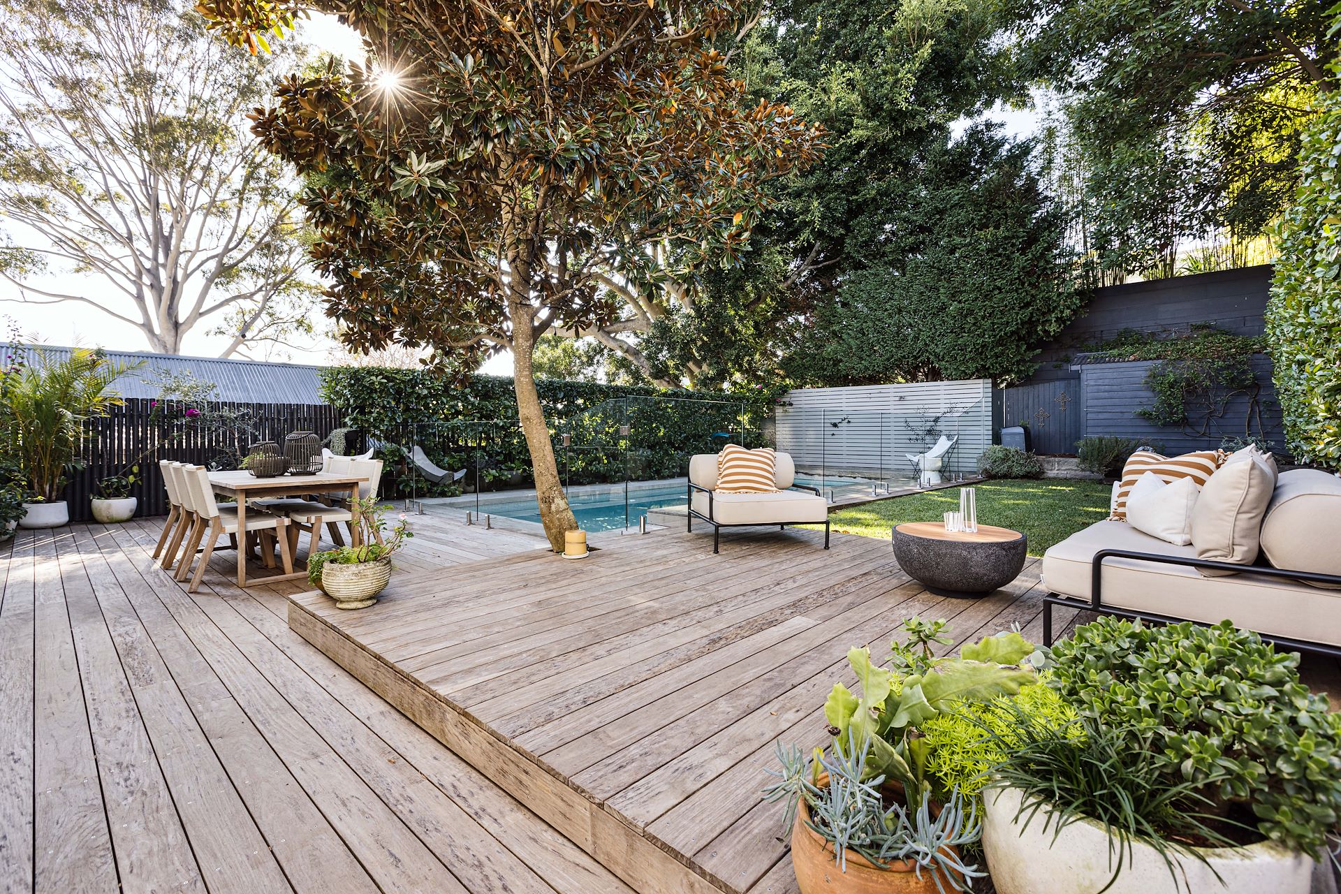 Completely secluded within an exquisitely landscaped garden oasis, this elegant weatherboard residence has been meticulously transformed into a luxuriously liveable designer haven and spectacular family entertainer. Retaining its inherent vintage ambience at the front with high patterned ceilings, kauri pine floorboards and a formal lounge room with a gas fireplace, it opens out to an expansive rear social zone that flows seamlessly to an entertainers' deck and level lawn with a sparkling heated pool. Superbly designed and appointed with every conceivable luxury, it is hushed away in a premier tree-lined street within footsteps of Manly West Public School, a stroll to Balgowlah or Fairlight Village and a stone's throw to beaches and Manly's attractions. - Alluring panelled façade, timber-posted verandah with a district view screened by lush gardens - Formal lounge room with a cosy gas log fireplace, custom storage cabinetry and a library - Sweeping family/meals area with heated tiled floors and floor-to-ceiling outlooks over the garden - Stacked glass sliding doors open to a rosewood entertainers' deck with an automatic shade awning - Stone/marble island kitchen with s/steel gas ILVE stove, integrated dishwasher and walk-in pantry - King-sized bedrooms with built-in wardrobes and ceiling fans, the main bedroom has an ensuite - Designer bathrooms with imported marble vanitytops, copper tapware and heated flooring - Air conditioning family room and upstairs bedrooms, surround sound, electric blinds in family room - Large concealed attic storeroom, plantation shutters, gas heating and barbecue outlets - Manicured hedges and soaring trees create a completely private rear garden oasis with level lawn - Sparkling heated pool with a French limestone surround plus a "hot and cold" outdoor shower - 250m to the primary school, 600m to Balgowlah Village and 800m to North Harbour Reserve - Walking distance to Fairlight Beach and B-Line buses, minutes to Manly's dining hub and beaches - Secure gated access to a carport extends to a covered breezeway storage area with board racks