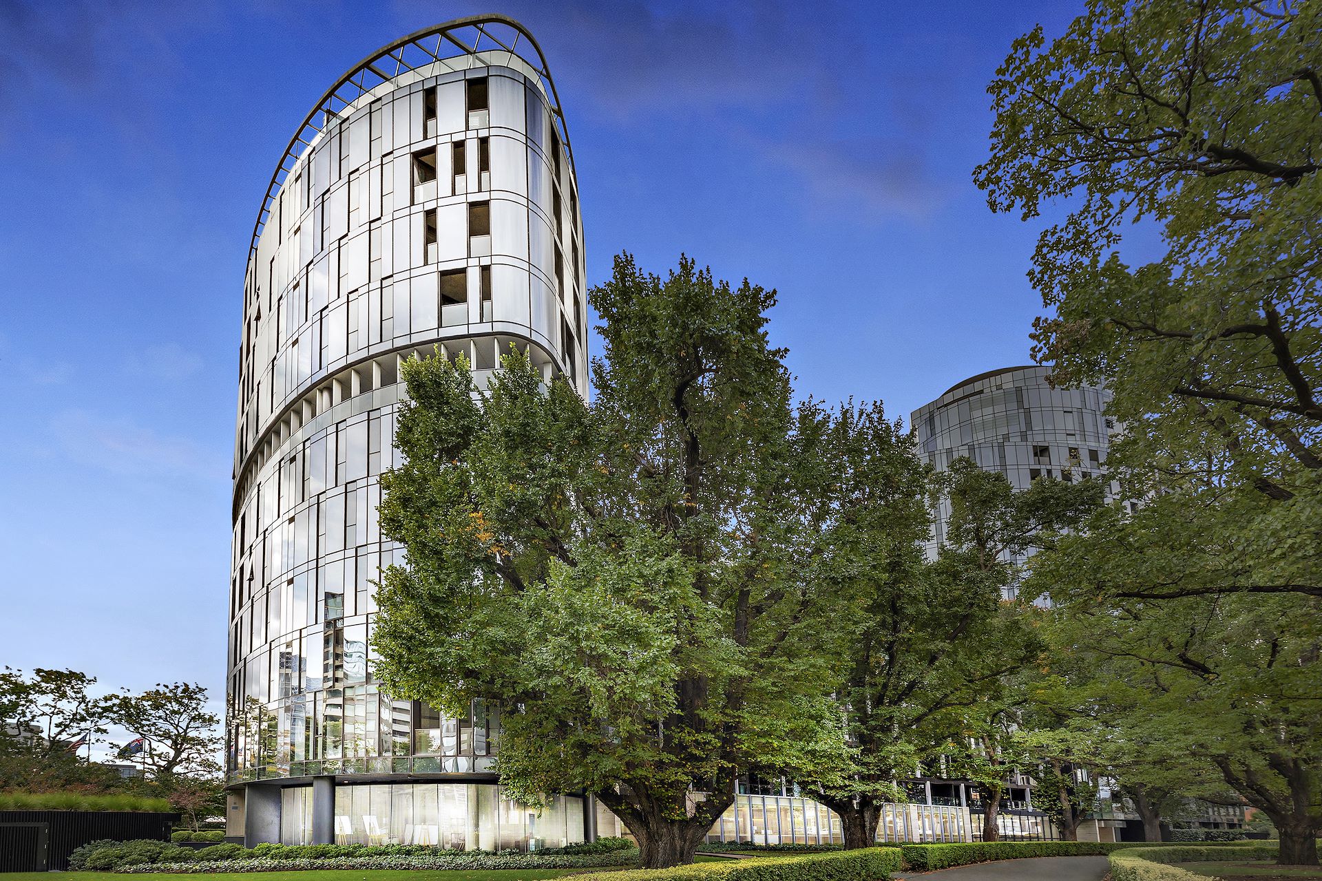 Uniquely designed with vast glazing overlooking Melbourne’s most famous tree lined boulevard, this elegant two bedroom, two bathroom and two car park home provides a comfortable haven underpinned by extensive communal facilities to take advantage of. Perched in the premium Parque building, designed by market leaders Fender Katsalidis Architects and within easy access to all Melbourne’s icons. Drawn in by a bright living room nestled into the arch of the building’s oval footprint and harnessing the sunny western light with edge to edge windows. This residence boasts a seamless marble kitchen with Miele cooking, integrated dishwasher and lighting and an island bench overlooking the living and dining zone before flowing onto an enclosed balcony that’s enjoyable all year round. A master bedroom with its own skyline view is served by a gleaming white ensuite with walk in rainfall shower and floating vanity while the second double bedroom with mirrored robes is served by a matching central bathroom. Ticking all the boxes, this beautiful residence also features a fitted technology hub, discreet Euro laundry, two separate car parks, storage cage, ducted AC and video intercom entry. Currently with a flexible tenancy. The choice is yours, move in and enjoy this luxurious apartment yourself or retain the investment offering. In a building with well-considered communal facilities to make use of including a rooftop infinity pool and sun deck with a stunning view, gym, library, winter lounge with a warming fireplace, dining room with fully equipped kitchen, BBQ terrace, verdant gardens and a 24/7 concierge service. If you do choose to emerge from this oasis, bask in the lush surrounds of Fawkner Park, The Royal Botanic Gardens, The Tan and Albert Park Lake all just a short walk away or hop on a tram into the Arts Precinct. Also close to Prahran Market, Wesley College and The Alfred.