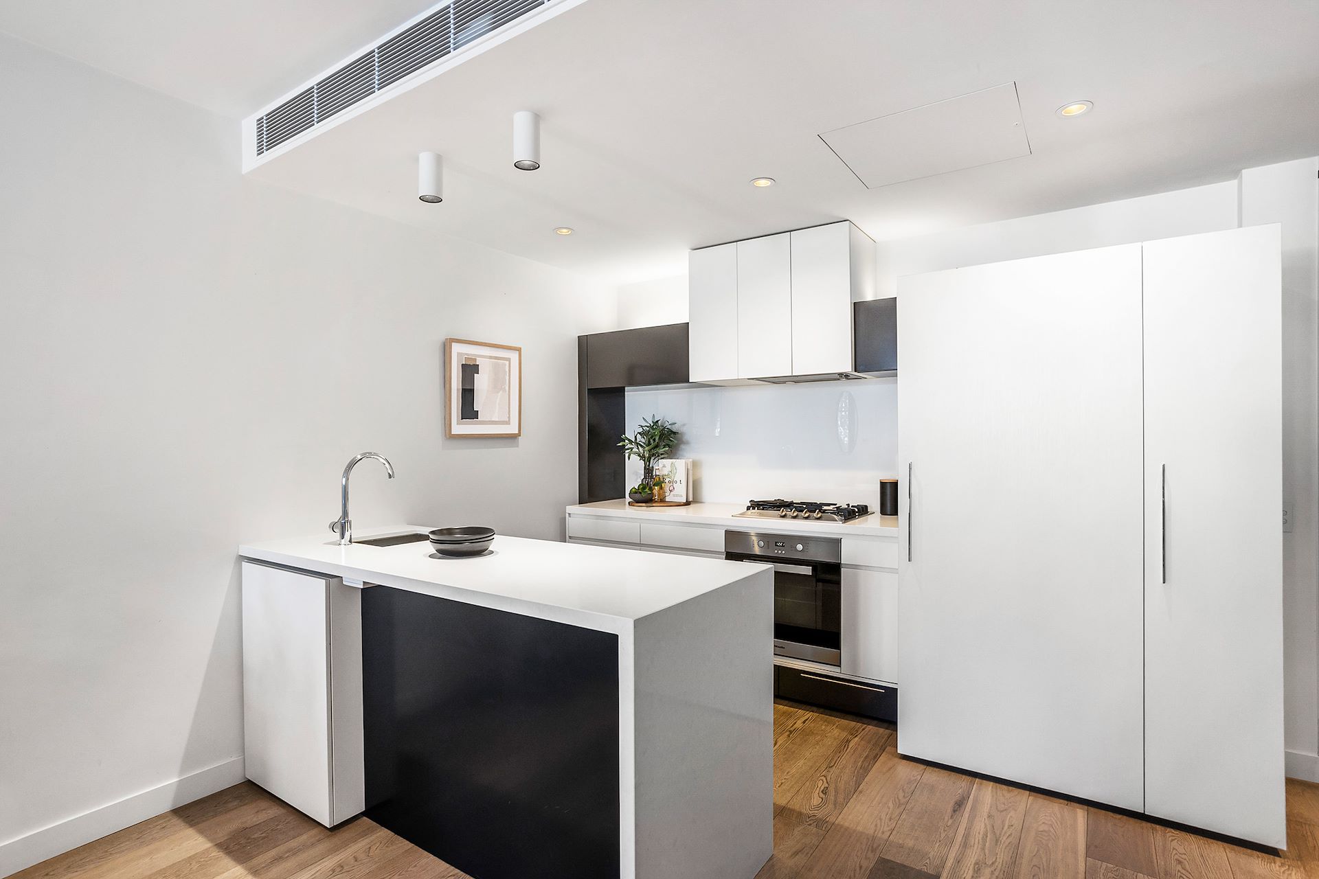 Behind the secure entry of "The Hawksburn", this urban pied-a-terre is a fine example of restrained sophistication fused with everyday utility. With natural light through every room, striking finishes and an extremely walkable location, this residence yields effortless living. Welcomed by wide oak wood floors that feel solid underfoot, the home comprises an open plan living and dining zone that flows onto a covered balcony. Overlooked by a generous kitchen with an island bench and a full suite of Miele appliances (gas cooking and dishwasher) all clad in easy-care glass and stone. Two robed bedrooms with natural light are served by a seductive hotel-style bathroom with a walk in shower and a wall of mermaid tiles highlighted by soft integrated lighting. Also features a discreet Euro laundry, ducted air conditioning and physical car spot for one with adjoining storage cage in a low rise block with a tranquil relaxation garden to spill onto. On the fringe of the bustling Hawksburn village, it's just a few steps to a wide range of eateries, groceries, tram options and train or a little further to Prahran Market and Chapel Street Precinct. Also close to the Alfred, Princes Gardens, Victoria Gardens and Orrong Park & dog park.