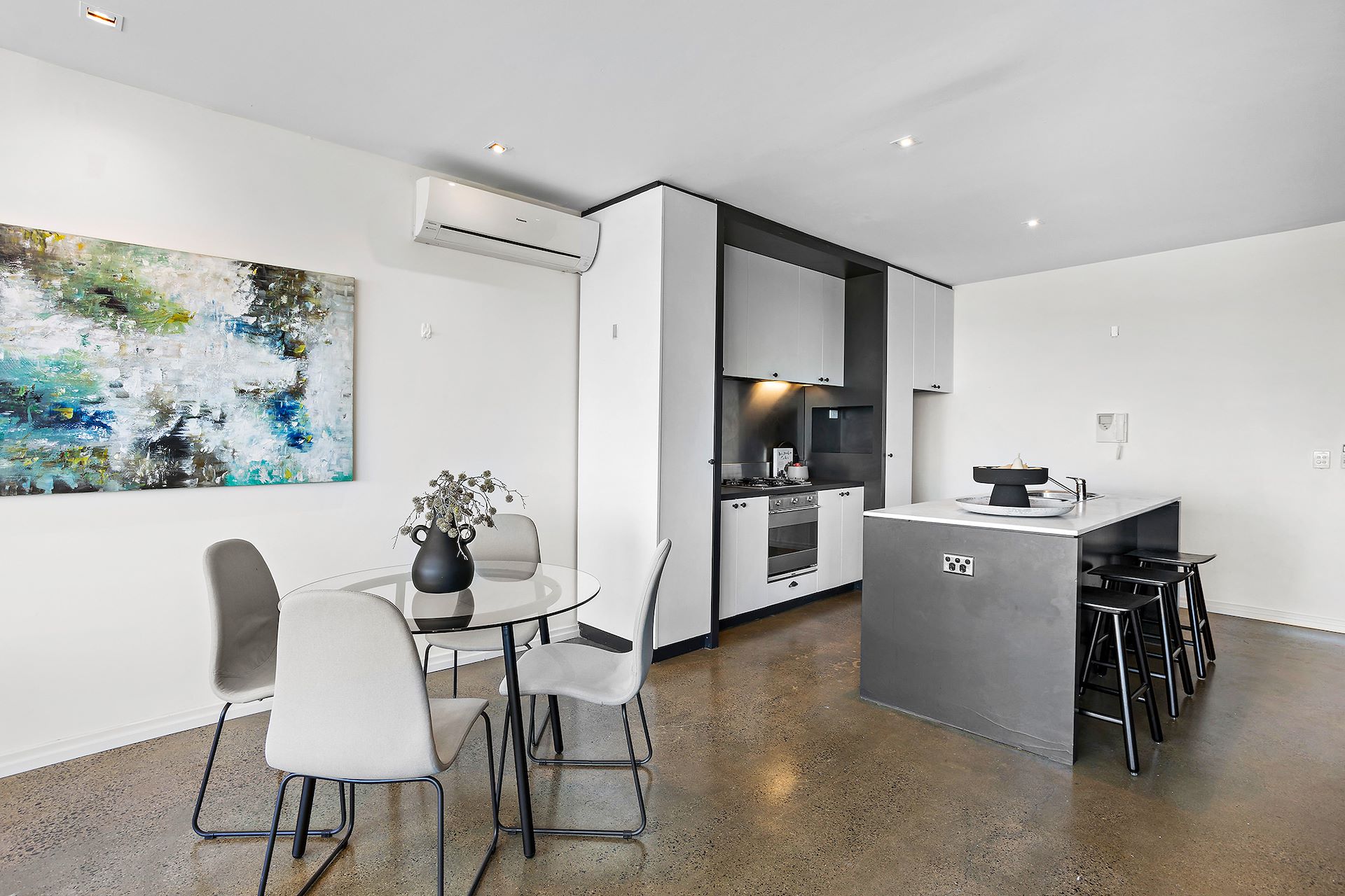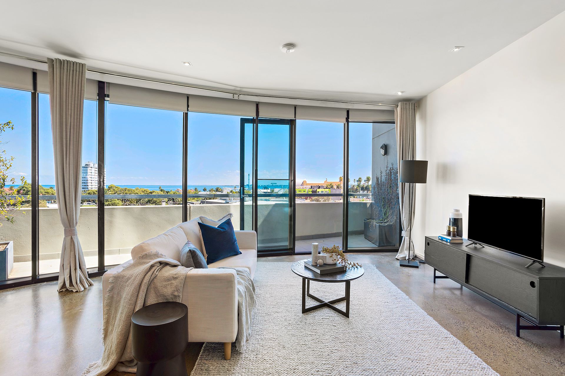 Discover a slice of bayside paradise right in the heart of St Kilda with this tranquilly positioned home in Acland Court, radiating the feel of a contemporary townhouse in a lock-up-and-leave, secure apartment setting. It makes for a refreshing sea change without the distance, where the calm of the sea meets urban convenience. The interior exudes a chic urban vibe with lofty ceilings, polished concrete floors, and a grey feature wall next to the floating staircase illuminated by two skylights, that leads to the main ensuite bedroom, second bedroom, central bathroom, and walk-in laundry. From the living and dining room to the terrace, enjoy the serene water views, complemented by the city skyline, a spectacle that grows even more striking from the main bedroom's elevated outlook through floor-to-ceiling windows. The kitchen shines with Smeg cooking appliances, a dishwasher, and a breakfast bar set against marble benchtops, which are echoed in the two bathrooms. If you need a home office or extra bedroom, a third room on the lower level has you covered, plus there's a powder room downstairs as well. Essentials like a full laundry, split-system air conditioners, the bonus of two car spaces, a storage cage, and secure intercom entry tick all the boxes for a comfortable lifestyle. Step outside and immerse yourself in the local amenities: grab your groceries from Coles on the doorstep, explore the diverse dining options on Acland Street, soak up the culture at the Palais Theatre, catch a tram for a quick city jaunt, or unwind on the beach during those perfect summer days. Embrace this executive lifestyle - effortless, elegant, and exactly where you need to be.