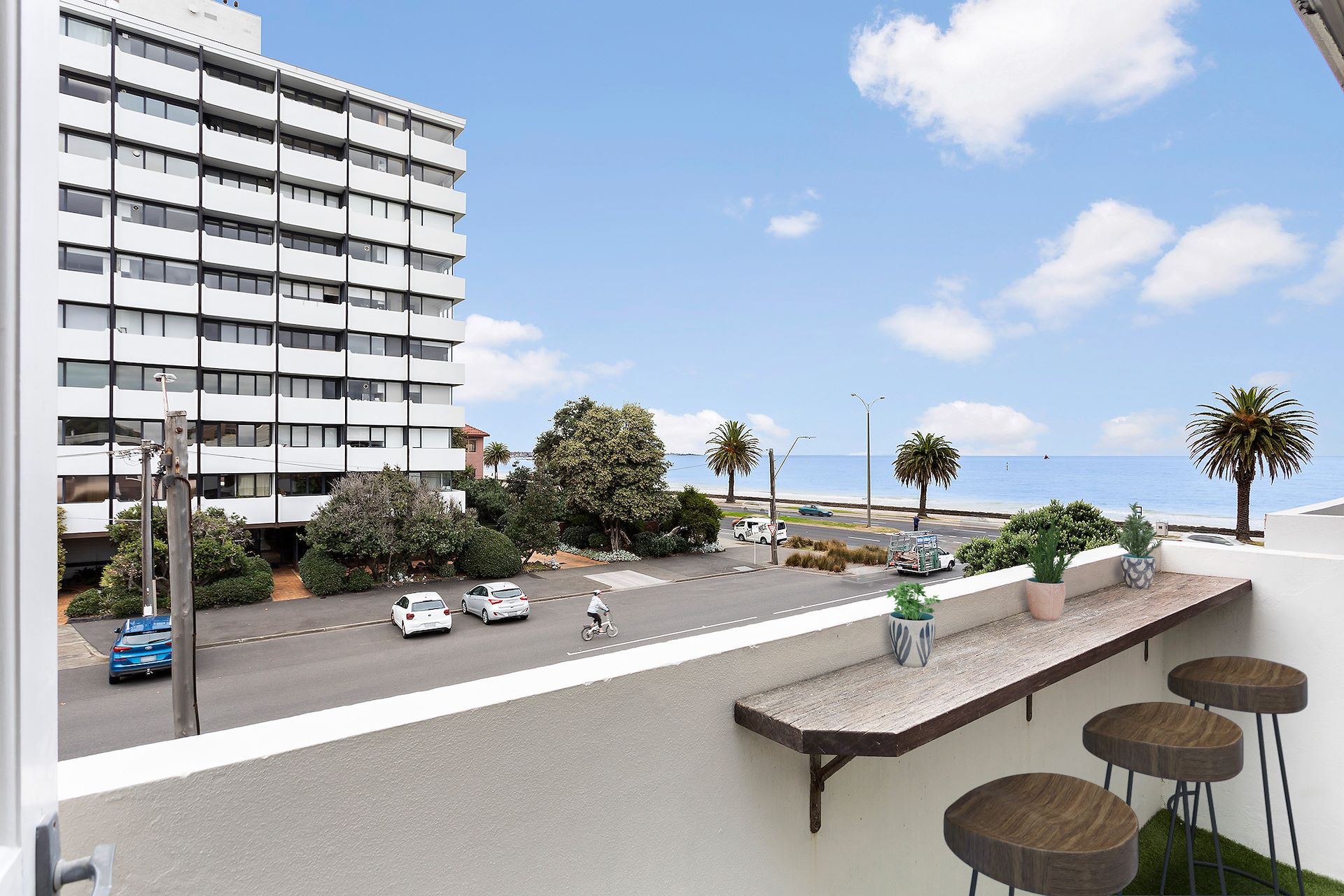 Meticulously and beautifully renovated with luxury and functional living in mind, this apartment is in one of the most desirable locations on the bay with the beach at your doorstep. With its enviable top floor position, the balcony boasts a wide and truly spectacular outlook over the peaceful waters of the Bay. On the corner of Wright St & Beaconsfield Parade, it is well positioned to take advantage of all Middle Park and Bayside delights with restaurants, cafes, shops and the tram close by. Featuring: • Incredible open plan living with split system heating and cooling opening onto the quaint balcony complete with outdoor bar to make the most of the water views. • Chic kitchen with sleek stainless steel appliances, beautiful timber benches and wonderful storage. • Bright master bedroom with BIRs and ceiling fan. • Versatile second bedroom with BIRs, ceiling fan and concertina door to allow for an optional open study or second living. • Stunning terrazzo bathroom with walk in shower and beautiful large vanity. • Separate powder room with terrazzo features. • Euro laundry. • Beautiful floorboards throughout. • Security entry and intercom. • Single off street car space. • Only 2 flights of stairs - easy walk up!