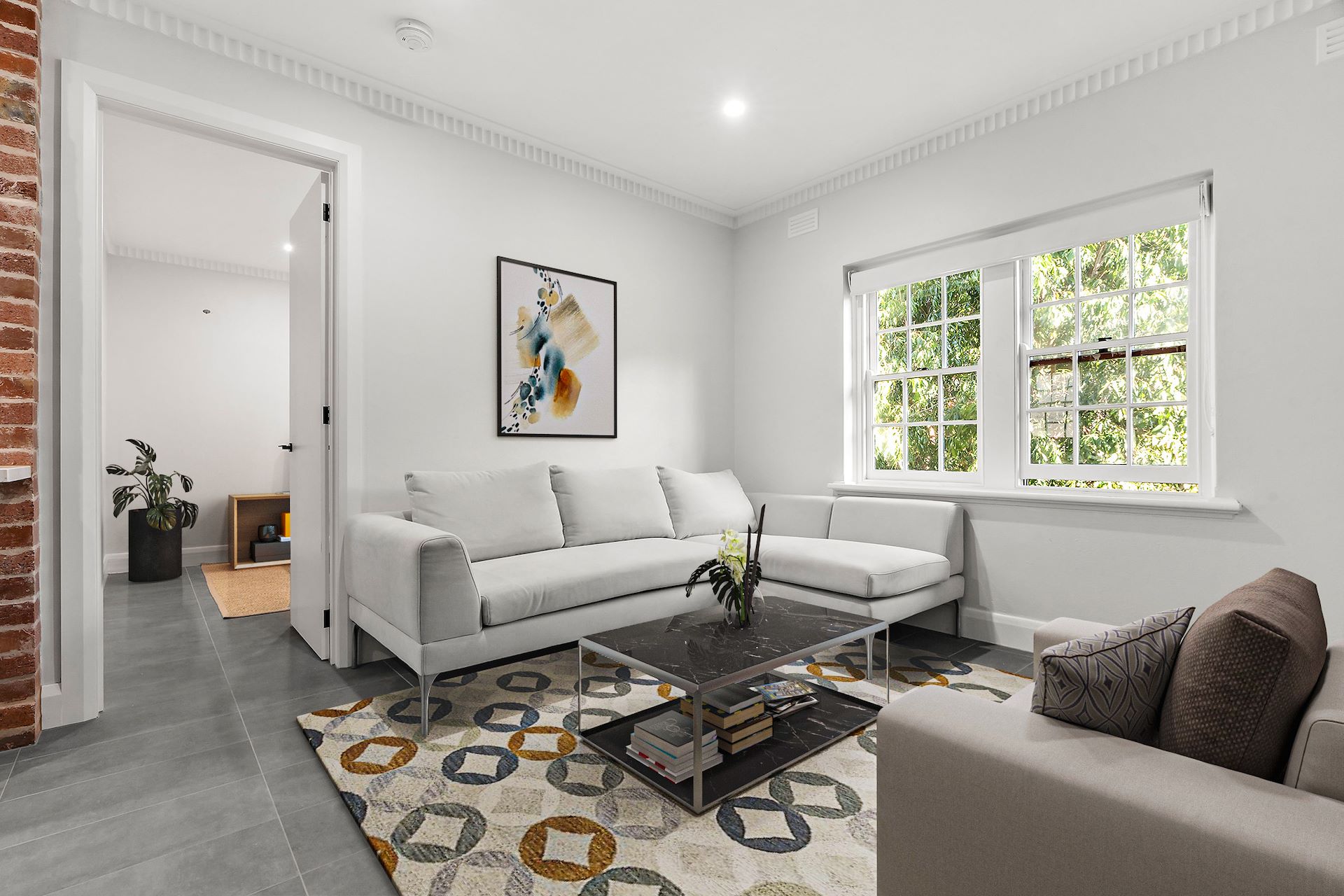 Just meters of buzzing Fitzroy Street and stone's throw from Catani Gardens & beach, this newly renovated, spotless art deco apartment is situated in a beautifully maintained block of only 16. Set back from the street, delightful upstairs spaces include central living/meals, separate functional kitchen with rear stairwell retreat, good sized double bedroom w. BIR and tiled bathroom w. laundry facilities. - Good sized lounge with open floor plan - functional kitchen w. gas cooking - Large double Bedroom with BIR - Tiled Bathroom w. laundry facilities - Polished floor boards - Electric panel heating - Security Entrance - Property includes lounge, bed frame, fridge, washing machine