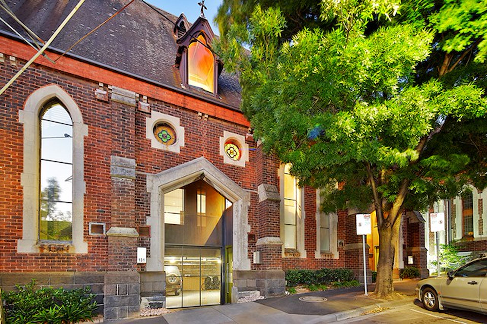 Unique architecturally designed 3 bedroom church conversion set on 3 levels and located on Richmond Hill. Well-appointed rooms with an abundance of natural light creating an inviting interior and showcasing large open plan living/dining area with gourmet stone benches, kitchen with quality appliances, 2 upstairs bedrooms (master with ensuite), study area and main central bathroom, large top level third bedroom complete with ensuite (incl spa) and bifold doors leading out onto north facing terrace complete with city views. Additional feature include high ceilings, heating/cooling, built in robes, dumb waiter, loft storage area, security entry and 2 undercover parking spaces. The ultimate in modern lifestyle, walking distance to Bridge Road cafes, trams, Yarra Park and the MCG.