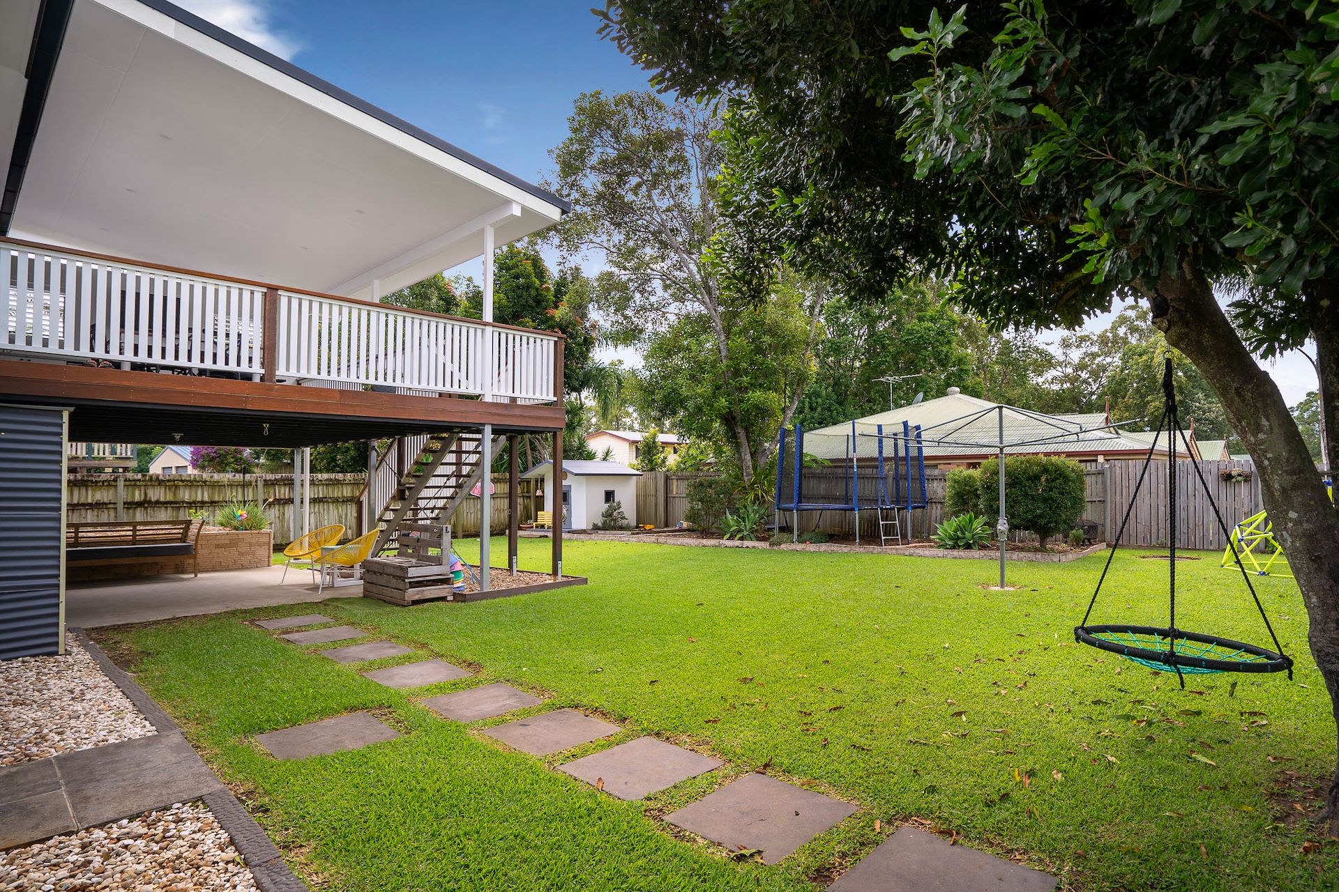 Welcome to 14 Dean Street, Bray Park a renovated, highset home tucked away behind manicured hedges within a peaceful, private location nevertheless offering shops, schools, restaurants, and transport to your doorstep. The moment you step through the front door you are greeted by inviting light filled living space featuring captivating polished floorboards only further enhanced by the alluring vaulted ceilings. The polished floorboards flow into the open plan kitchen and dining quarter which have been modernised, highlighted by the stainless-steel appliances and the abundance of bench and cupboard space. Weekend BBQ breakfasts or sunset drinks and canapes will be an event every time – held on the expansive rear deck with fly over roof, complimented by an outdoor kitchen and TV. Here you can pop a bottle of champagne, put out some bean bags and hold your own Gold Class with the kids while you have some popcorn and watch the latest movie. The three generous sized bedrooms two feature dual built-in robes and enjoy leafy outlooks serviced by a family bathroom and separate toilet. Downstairs also offers a new second bathroom and home office/study or 4th bedroom potential and could have many additional uses with a large open rumpus room, catering to those that need a a teenage retreat or workshop. The fully landscaped 608m2 rear yard (with side access) is where this property really comes to life. The westerly aspect allows the space to be useable Year-round, so invite your friends and family and host them in your undercover lower patio which has been loving created for the entertainer, or space for the kids to play. Located under 30 minutes to Brisbane CBD, less than an hour to the Sunshine Coast, and so many local conveniences on your doorstep, what's not to love about this property. Features list: - Large 608m2 wide block with side access - Double garage - Front deck for your morning coffee - Massive rear covered deck with outdoor kitchen - Minutes to all modern conveniences - Downstairs area perfect for a home office or teenage retreat - Western facing fully fenced landscaped rear yard for Year-round entertaining - Undercover entertaining area - Updated kitchen with stainless steel appliances and an abundance of bench and cupboard space - Vaulted ceilings - Impressive polished floorboards throughout - NBN available