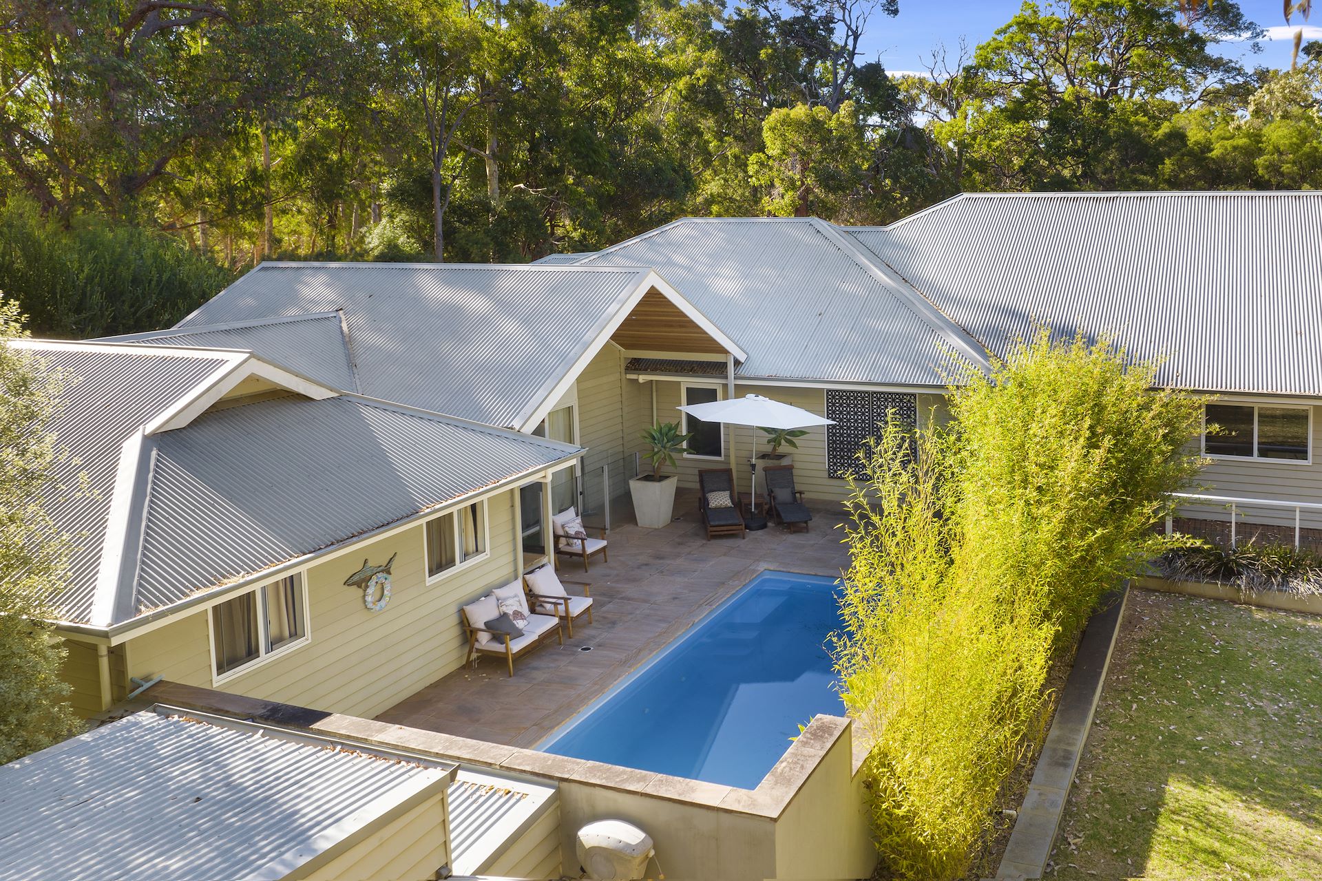If you are looking for the ultimate down south getaway, then look no further! This home will make the perfect full time family home or a sensational holiday home, already council approved for the booming holiday rental market. This magnificent residence is nestled into a beautiful 1-hectare lot that has been parkland cleared with stands of spectacular old growth Marri trees and lovely expansive lawned areas. The property is conveniently located 1.5km from the vibrant tourist town of Margaret River and around 7km to the beach at Prevelly, with a cycleway close by, just jump on your bike and cruise to town or the coast. The two-storey home was constructed in 2008, with a north facing orientation and lovely features throughout, from vaulted ceilings with cathedral windows and warm hardwood floors, to the sparkling retreat style pool and wide sheltered veranda's that take in the vast rural style views. Consisting of 6 bedrooms and 4 bathrooms the home offers enough space for the largest of families, with the perfect floor plan and a clever design that provides you with the ability to holiday let the attached 2 bedroom studio, while still retaining your privacy in the main residence. Or you can lease the entire home and maximise your return on investment. Properties with options like this are very hard to find and with an amazing location and the necessary shire approvals, all the hard work has been done. The main living area is light and bright, with a large comfortable loungeroom complete with a cosy wood fire and those beautiful hard wood floors. The kitchen comes complete with granite bench tops and quality appliances, this adjoins the dining area that will hold the largest of dinner parties, with the whole main living area opening on to an all weather alfresco that overlooks the stunning Marri trees. The spacious master bedroom faces north and comprises of a full size ensuite with freestanding bath, large walk in robe and the convenience of a bespoke ceiling fan. All additional guest bedrooms are very well proportioned with plenty of storage. The 2 bathrooms on this main living level both provide a bath, shower and vanity, while there is a separate powder room for guests convenience. The studio wing that adjoins the residence and is under the same roofline with an adjoining door. Barefoot Studio Escape is an approved short stay with a very good annual return, the studio is amazing with its own pool, living room, resort style bathroom complete with toasty under floor heating. It can be utilised as a 1 or 2 bedroom apartment which is simply stunning and one of Margaret River's best little getaways. The downstairs has been cleverly recessed into the block, this provides more accommodation with a bedroom and bathroom, plus a spacious loungeroom/billiard room, with a built in library, bar and a wine cellar plus an undercover BBQ area and outside bathroom, it's like having you own sports bar. This expansive lifestyle residence will charm you from the moment you enter the property. Set on just over 1 hectare of beautiful parkland cleared grounds, this is a must see property whether you are in the market for a getaway or a new home. Inspections of 14 Guernsey Gully are by appointment only. With the Bare Foot Studio being so popular with guests, forward notice to inspect is necessary.
