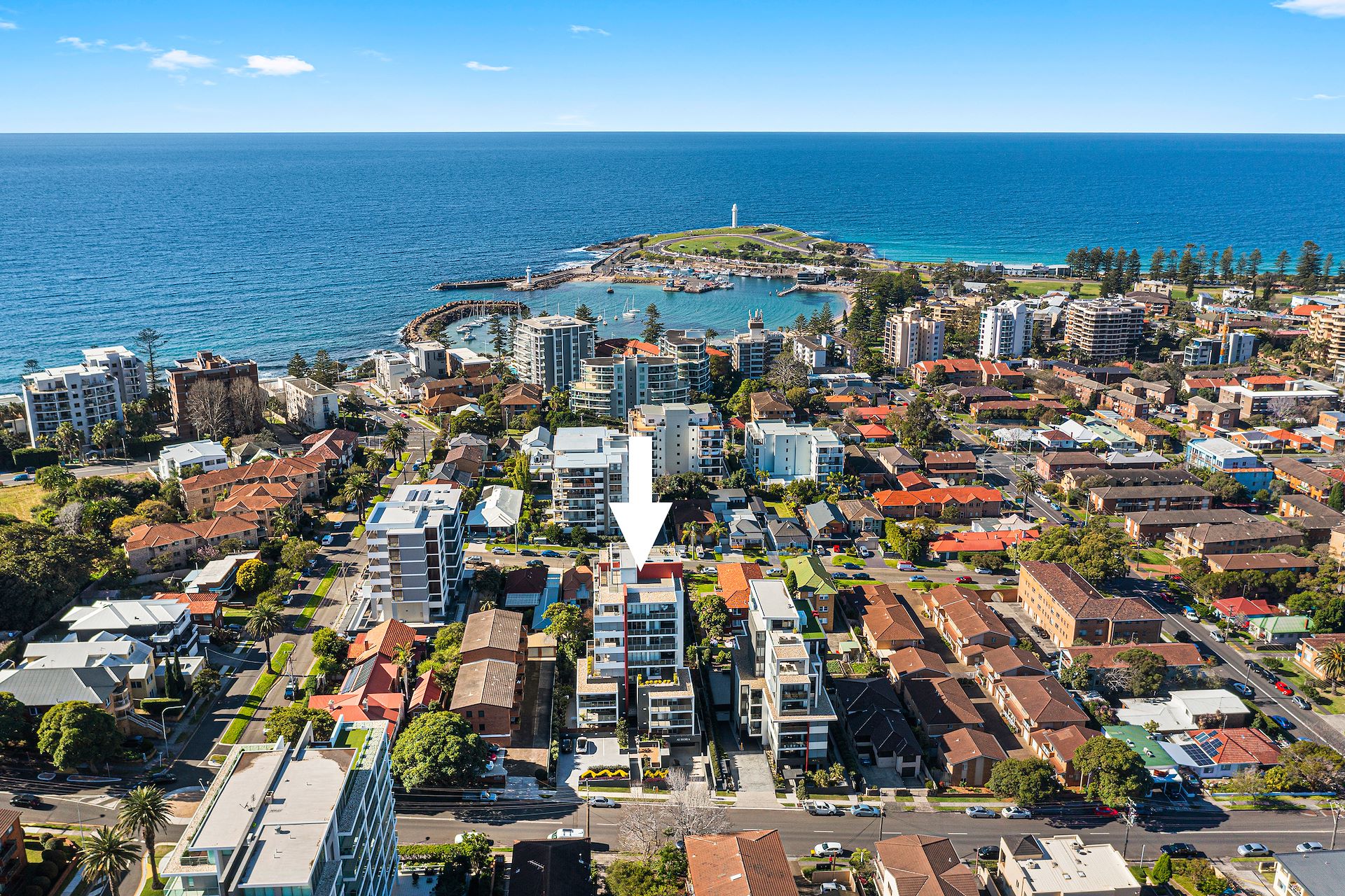 WE WELCOME PRIVATE INSPECTIONS AND FACETIME APPOINTMENTS Enjoy panoramic ocean views in a popular lifestyle address, this grand apartment takes city/coast living to the next level. Providing the interior space of a house, its high-end footprint is made even more luxurious by a sensational entertainers' terrace stretching the full width of the home and giving flowing access from the lounge and master bedroom. Premium-quality finishes, pet friendly strata and four-car garaging leave little to be desired by the professional couple or discerning family buyer, within a level stroll of Wollongong Harbour and the Blue Mile. - Style and comfort converge in one of the CBD's finest settings - Open-plan design with floor to ceiling glass windows and timber floors - Elegant sheltered terrace features discrete sitting and or dining zones - Miele appliances, stone benchtops, gas cooking and mirrored splashback - Stunning family bath with freestanding tub; private master quarters - Robes throughout, streamlined ducted air, only two apartments on the floor - Moments from cafes, city schools, free shuttle and Wollongong Harbour
