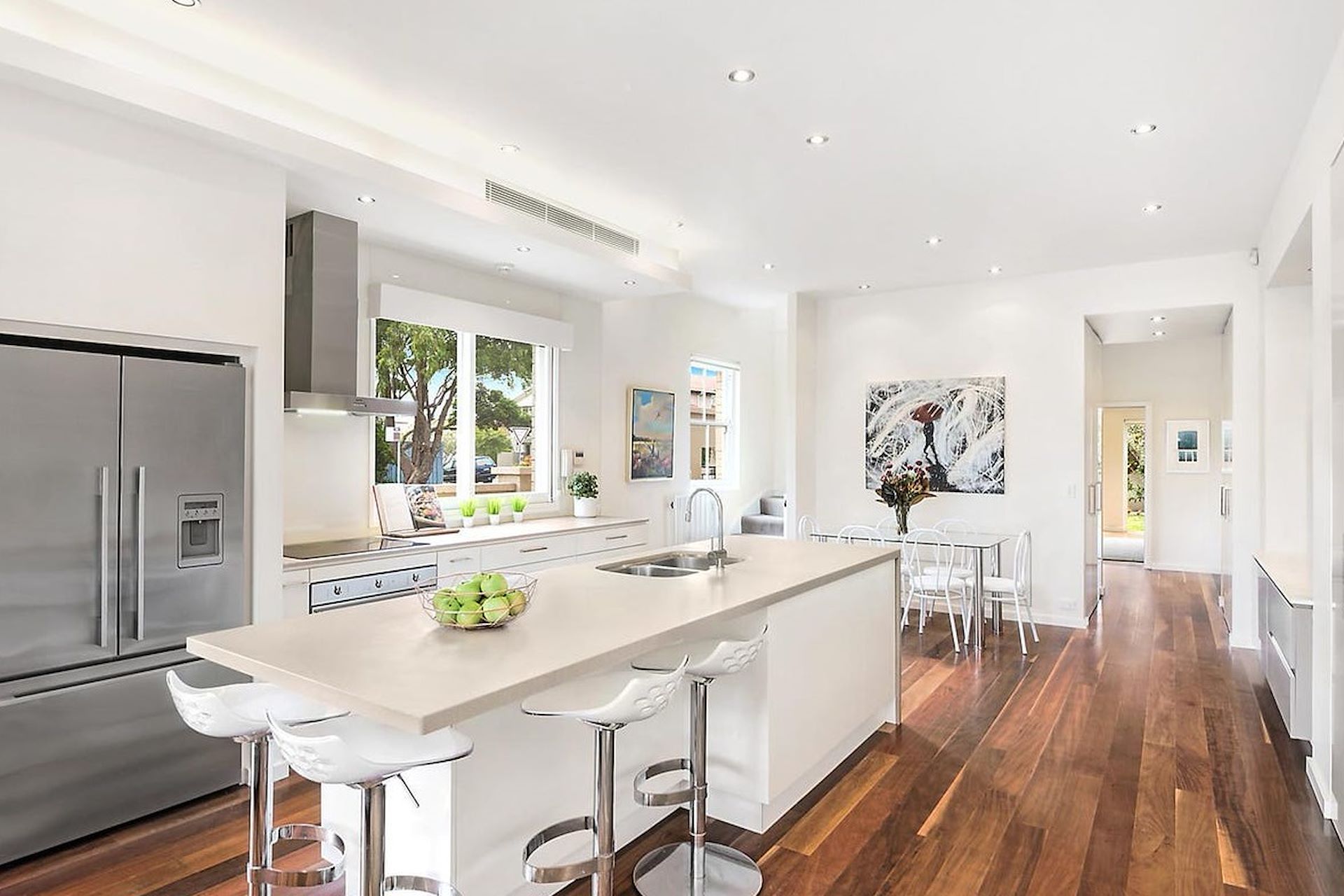 Open to the northern side, this house-like semi embraces a light and spacious dual level design with fabulous flow to wonderful outdoor entertaining areas. It occupies a large corner parcel, a stroll to shops, harbour view reserve and city buses. - Free flowing interiors blend light filled living/dining areas - Bi-folds open onto a sun drenched outdoor entertaining deck - Generous family lounge/4th bedroom extends out to a private lawn - Flawless CaesarStone island kitchen with induction stove - Good sized bedrooms with mirrored built-ins and sunlit windows - King sized master bedroom with built-ins and viewing terrace - Immaculate rainshower bathroom plus a second full bathroom - Hardwood floors, ducted air conditioning, raked ceiling, alarm - Large lock-up garage, attic storage space and intercom - Walk to cafes, synagogues, coastal walks and close to Bondi