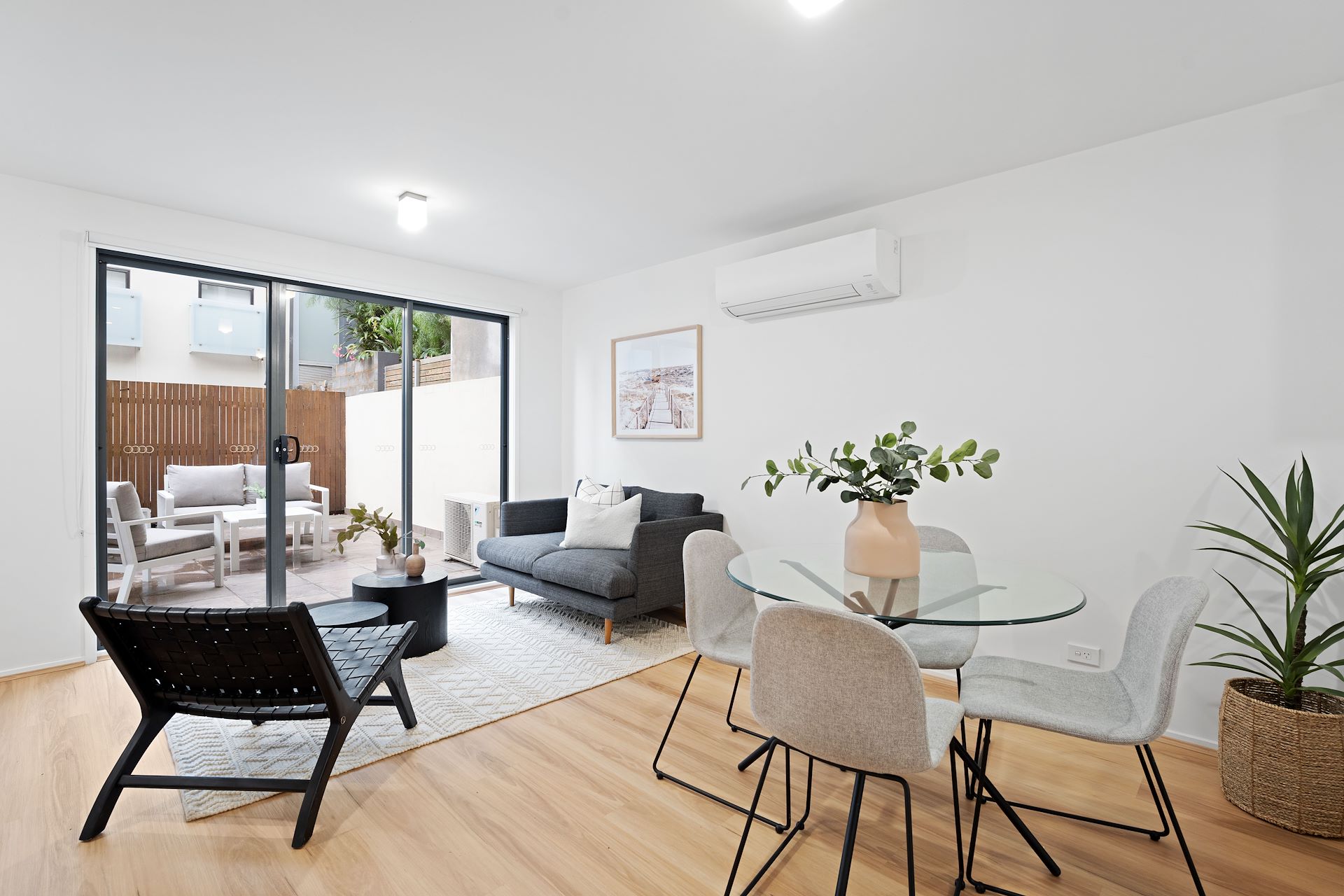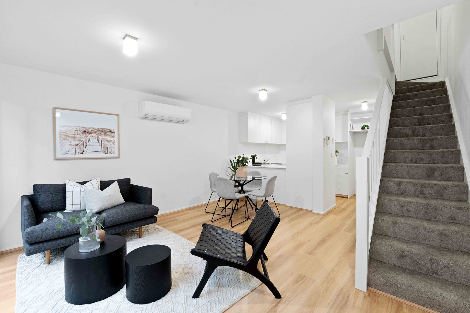 Rich in passive light and modern luxuries, this split-level gem offers calm and considered inner-city comfort between Parkville's major hospital/university precinct and the lifestyle offerings of animated Errol Street. With outstanding proportions and a layout perfect for home professionals, a well-worked plan enjoys seamless movement between spaces, with relaxing front and rear courtyards providing sun-soaked retreats for cloudless afternoons. Afternoon rays cover a brilliant main section, with living and dining zones hospitably served by a home chef's kitchen boasting stone benchtops, upscale appliances, and ample cabinetry. Equally adept as a dedicated office or lower bedroom, a quiet lower lounge ensures welcomed versatility, while impressive robe storage, a smart main bathroom, and private ensuite accompany a pair of substantial upper bedrooms. Its appeal is augmented by reverse-cycle heating/cooling, an intercom/security entrance, European laundry, two basement car spaces (tandem), and a storage cage. The stand-out residence sits steps from green reserves and tranquil Royal Park alongside city trams, the historic Queen Victoria Market, and colorful Flagstaff Gardens.