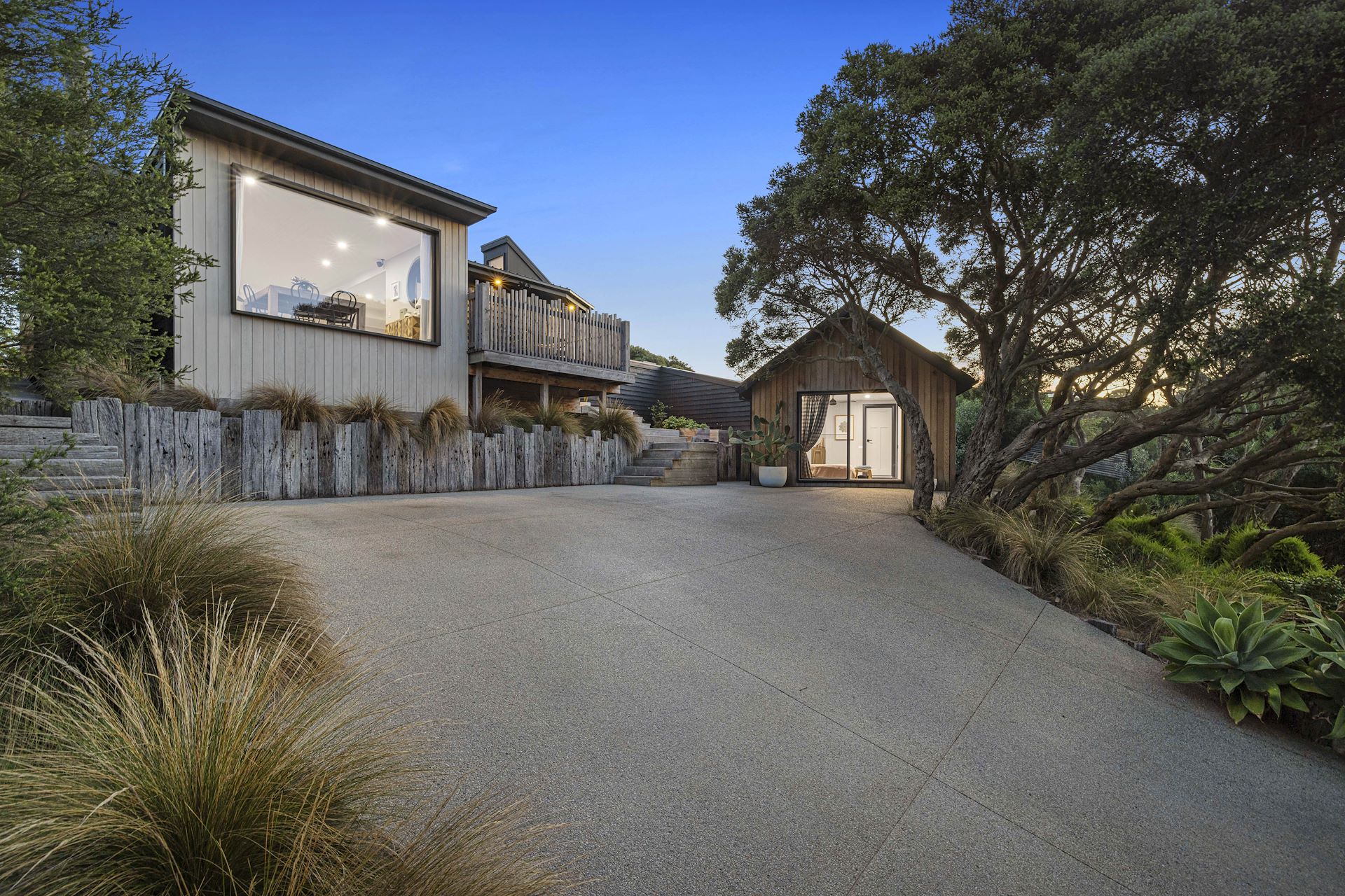 Sublime oceanside hideaway on 3/4 acre allotment Crowning the peak of a sprawling 3,035m2 (approx.) allotment backdropped by the crash of the surf with uninterrupted coastal vistas to Cape Schanck, the dunes and offering a glimpse of Bass Strait beyond, this breathtaking surfside hideaway delivers the epitome of laidback beachside living. Showcasing striking architectural lines, organic tones and textures, high-spec finishes and the exquisite attention to detail of Philpott Building and Carpentry, luxury unfurls across a stunning split-level design adorned with natural solid hardwood blackbutt floors and high timber-lined ceilings. Displaying the timeless architectural design of Brian Earles, the generously sized central living and dining area with French fireplace boasts high clerestory windows and vast picture windows framing the coastal panorama, while sliding glass doors open to a tiered barbecue deck gazing out to the iconic Cape Schanck Lighthouse, providing a glorious setting for outdoor dining. The newly installed epicurean kitchen is moored by a waterfall-edge stone island and impresses with a butler's pantry and premium European appliances, including an integrated Bosch dishwasher, integrated fridge/freezer and a striking English-made 900mm Falcon oven with a 5-burner gas cooktop. Bluestone tiling, brushed-brass tapware, venetian-rendered walls, floating blackbutt vanities with stone basins and walk-in showers complement both the master ensuite and the full family bathroom, which also flaunts a freestanding stone soaker tub, while the tranquil outlook is framed through almost every window throughout the residence, capturing golden sunrises and sunsets through the treetops. Peppered by moonah trees and a selection of tiered gardens, at the rear of the allotment a colossal mancave with contemporary bathroom and over height roller doors could also very comfortably serve as a guest cottage beside the boat bay and expansive flat lawn, which provides abundant room and easy access to install a swimming pool or tennis court if desired. Cradled at the end of a quiet cul-de-sac with dual street access to Avon Road and a shortcut to the ocean reserve just 750 metres away spilling down to a selection of surf breaks, the residence includes zoned electric ducted heating and cooling throughout, an additional split-system in the master, a striking front gate embellish with old Portsea Pier posts, a cubby house, inground trampoline, chook house, veggie beds and a loads of off-street parking. A private oasis moments to the Dunes Golf Links, Peninsula Hot Springs, Rye's bay beaches and cafe strip, endless surf breaks, boating facilities, wineries and equestrian trails and just 6-minutes' drive to Rye Primary School, this rare and captivating package will suit both permanent families and holidaymakers alike. To be notified when inspections of this property are available, to be sent a copy of the contract and advised of property updates, simply submit an enquiry on this page. Belle Property is proud to be offering this property for sale. For further information, please contact Tim Bradler on 0400 312 412 tim.bradler@belleproperty.com Disclaimer: Whilst every care has been taken in preparing the property information, it is to be used as a guide only. Please refer to the appropriate legal documentation to complete your due diligence.