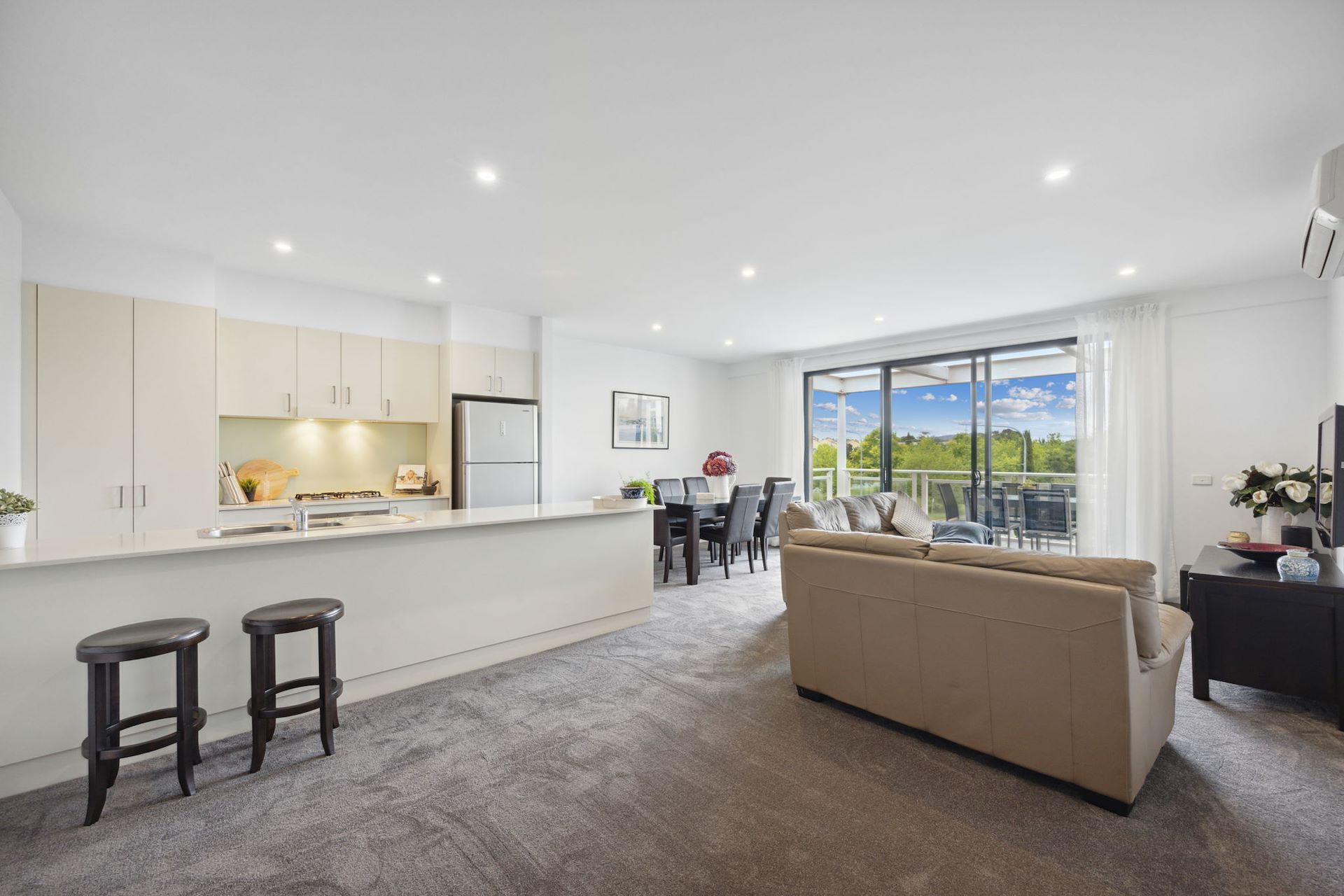 Welcome to this exquisite two-bedroom, two-bathroom apartment nestled in the heart of the highly sought-after Kingston suburb. Immerse yourself in the charm of this modern residence boasting brand-new carpet and paint throughout, complemented by 2.7-metre ceilings that exaggerate its top-floor position. The open-plan living, dining, and kitchen areas seamlessly flow together, opening up to a balcony with views of iconic Telstra Tower. The kitchen is perfectly fitted, featuring a stone bench top, Westinghouse oven, gas cooktop, Bosch dishwasher, ample storage, and a stylish glass splash-back. The living space is adorned with plush carpeting and sheer curtains, providing comfort and style. This north-facing apartment takes full advantage of its top-floor location with an entertaining balcony that overlooks Kingston and Black Mountain. Stay comfortable year-round with air conditioning in the main living space, and enjoy the convenience of ample storage throughout the apartment. The main bathroom is comfortably equipped with a bath and shower combo, complemented by a built-in laundry for added convenience. The generous second bedroom comes complete with a mirrored built-in robe, TV, and internet points-perfect for a home office or spare bedroom. The main bedroom is a generous size, fitted with a his and hers walk-in robe. The ensuite is luxuriously appointed with a double mirrored shaving cabinet and sinks. Both bedrooms are adorned with curtains and sheers, adding a touch of sophistication to the space. This modern apartment is versatile and caters to various lifestyles-it's an ideal choice for investors, Airbnb hosts, or young professionals looking for a move-in-ready home. The property includes a two-car tandem garage with additional storage, providing convenience and practicality. Situated on the doorstep of the Kingston Foreshore and just a short walk to the Kingston Shopping Centre, this residence offers a lifestyle of convenience and sophistication. Don't miss the opportunity to make this contemporary gem your own. * North facing two bedroom apartment * Top floor location * 2.7 metre ceilings * Open-plan living, dining and kitchen, freshly painted and carpeted. * Gas cooktop, Bosch dishwasher * Generously sized balcony with iconic landmark views * Includes two parking spaces and storage * In the heart of Kingston, within walking distance to cafes, shops and Lake Burley Griffin * Option to purchase with all fixtures and furniture included * Body corporate fees: $1,857pq Whilst all care has been taken to ensure accuracy in the preparation of the particulars herein, no warranty can be given, and interested parties must rely on their own enquiries. This business is independently owned and operated by Belle Property Canberra. ABN 95 611 730 806 trading as Belle Property Canberra.