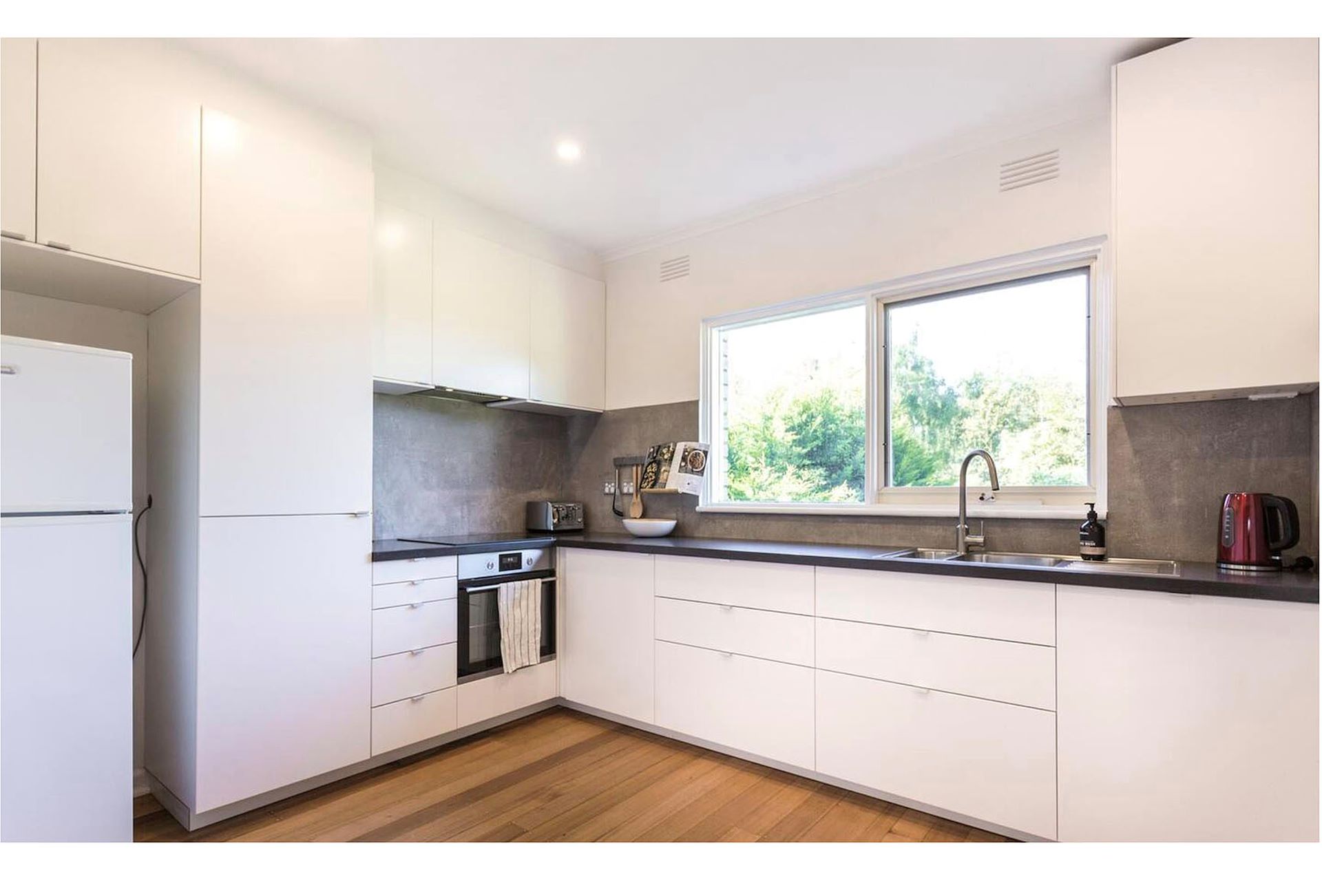 You'll love the light flooding through the large north-facing windows of this renovated, top-floor, two-bedroom apartment high on the hill in St Kilda East. Boasting polished floorboards, a sparkling bathroom with heated towel rail, modern kitchen with induction cooktop and dishwasher, and reverse-cycle air-con (heating and cooling) in the living room, plus secure off-street parking out the back. The block is in a quiet, leafy pocket of East St Kilda, close to shops, with the city, Melbourne Uni, Chapel Street and St Kilda all within easy reach by public transport. With city views (on a clear day) from the balcony and bay glimpses (if you squint) from the kitchen, this is a perfect place to call home.