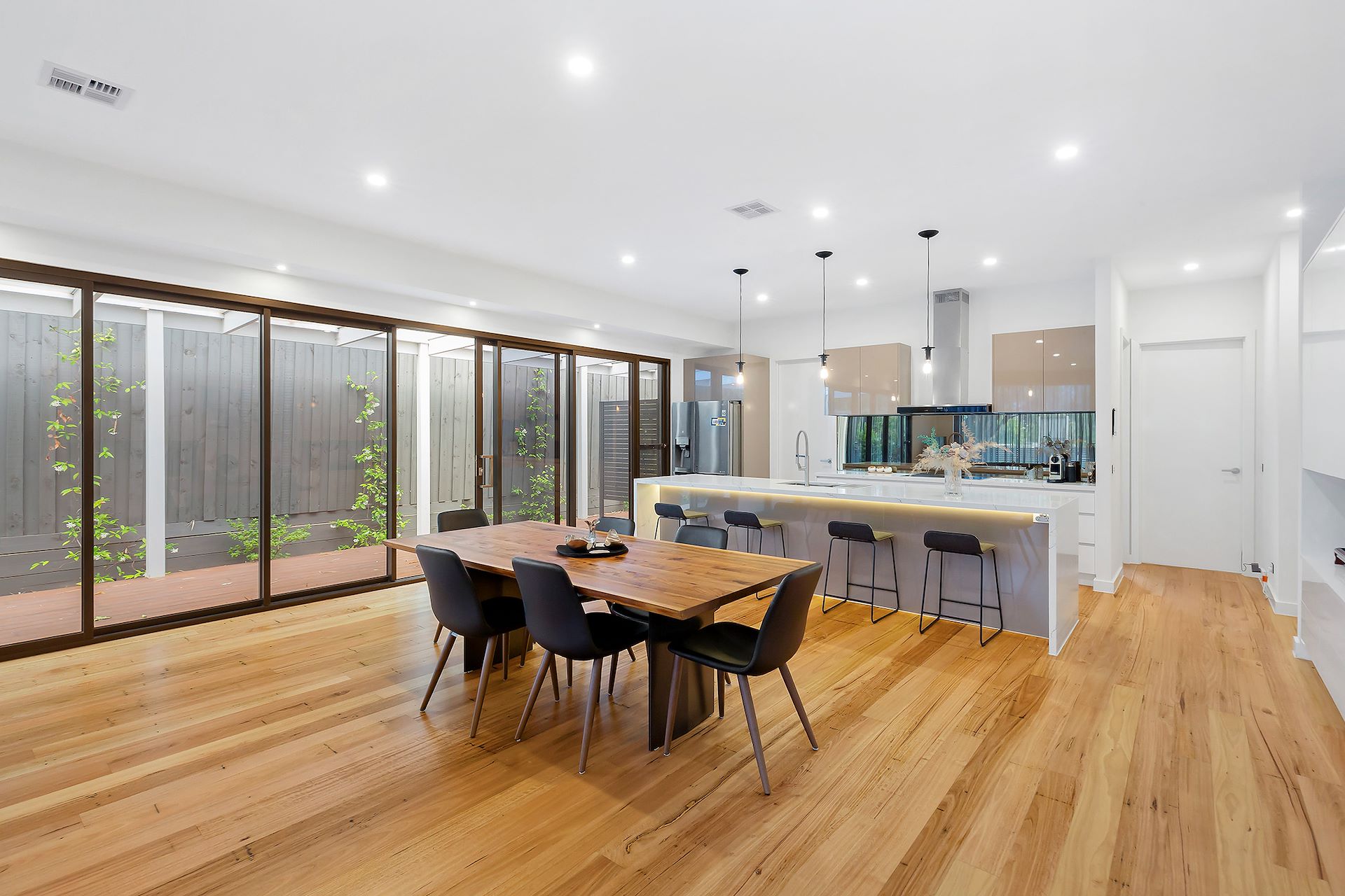 This light filled, immaculately presented two-level contemporary townhouse has abundant offerings. Positioned in a quite cul de sac opposite beautiful Wilson Street Reserve, and located close to schools, Middle Brighton Station, Hampton Street, Bay Street & Church Street shops and restaurants. This property is a prestigious private haven in a premier location. Featuring: - Incredible floorplan across three levels (including the basement garage) with lift access. - Secure intercom entry through private courtyard. - Large open plan living on ground floor showcasing custom stained Spotted Gum floorboards and glass stacker doors onto the external decked alfresco area. - Beautiful kitchen with stunning Caesarstone benchtops, island bench/breakfast bar, large butler's pantry and quality Miele appliances including induction cook top and dishwasher. - Separate laundry. - Ground floor luxury bathroom. - Huge master suite with leafy views, extensive robes and luxury ensuite with freestanding bath. - Second bedroom with luxury ensuite and mirrored BIRs. - Third bedroom with BIRs. - Ducted heating and cooling throughout. - Ducted vacuum. - Alarm system. - Extensive lock up storage room. - A security basement carpark with space for two cars. - Option for Furniture to be included: imported Italian leather sofas, coffee table, TV unit, TV, stunning timber table and chairs, bar stools, refrigerator.