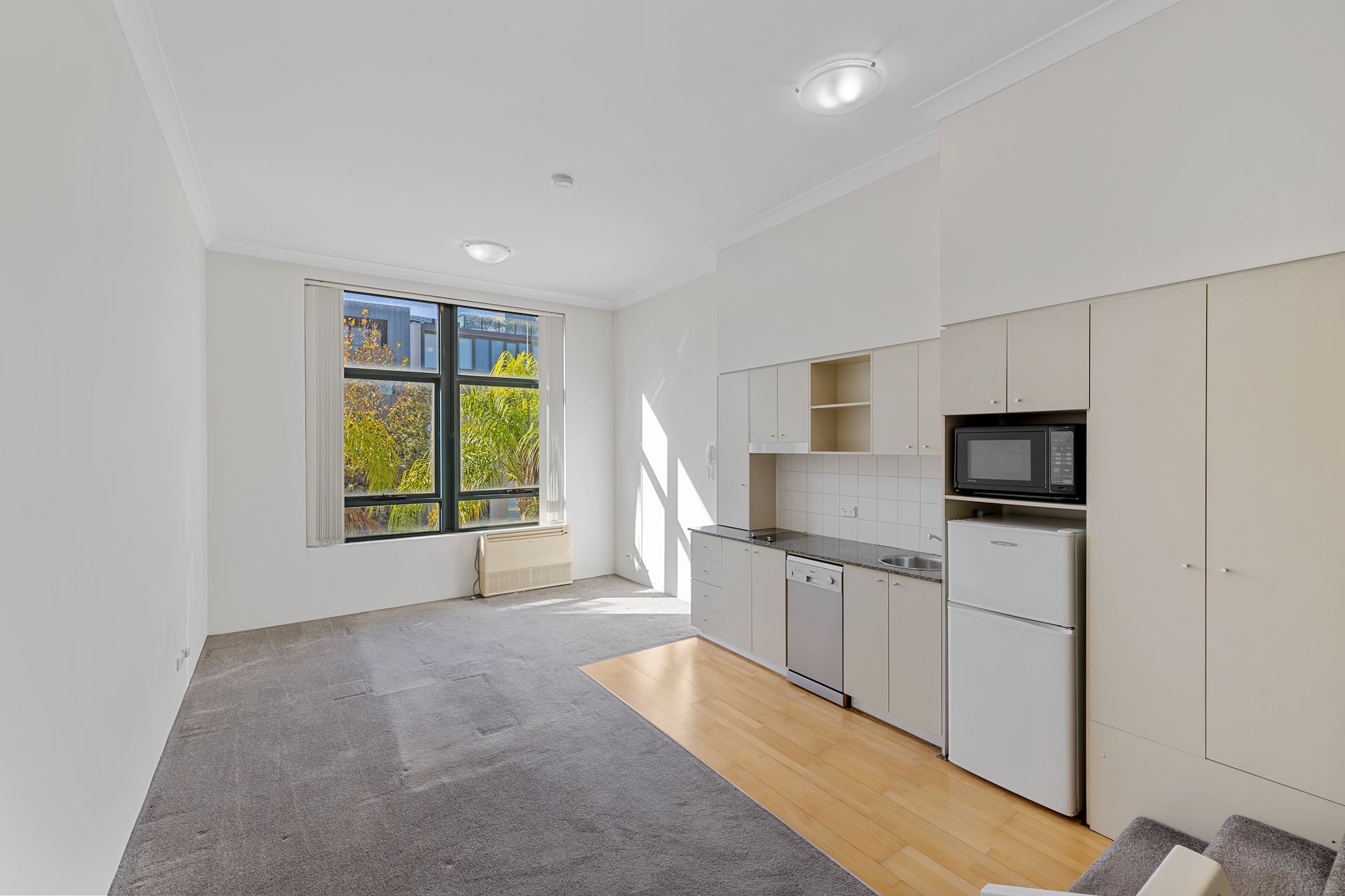 Located in the modern Maximilian Apartment building, this spacious and light filled split level, large studio the size of a one bedroom apartment with separate bedroom and living areas will make a wonderful home. Conveniently located in the heart of Neutral Bay opposite shops/Cafes and on bus line to the City. - Bright and spacious interiors - Architectural split-level design - Built-in mirrored wardrobe - Modern kitchen with granite bench-tops and dishwasher - Internal laundry facilities including dryer - Security building with elevator access - Under cover security parking - Close to shops & transport.