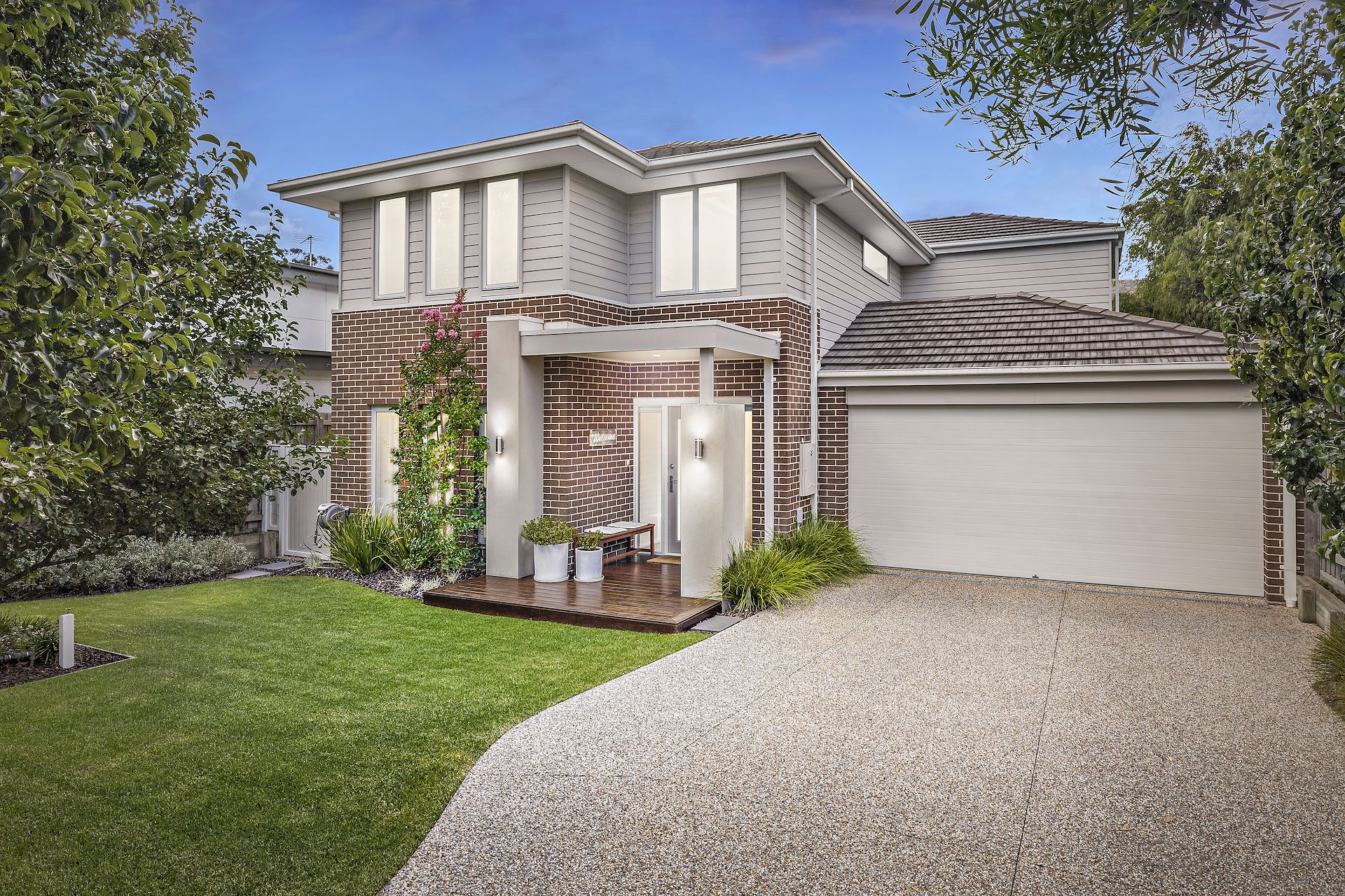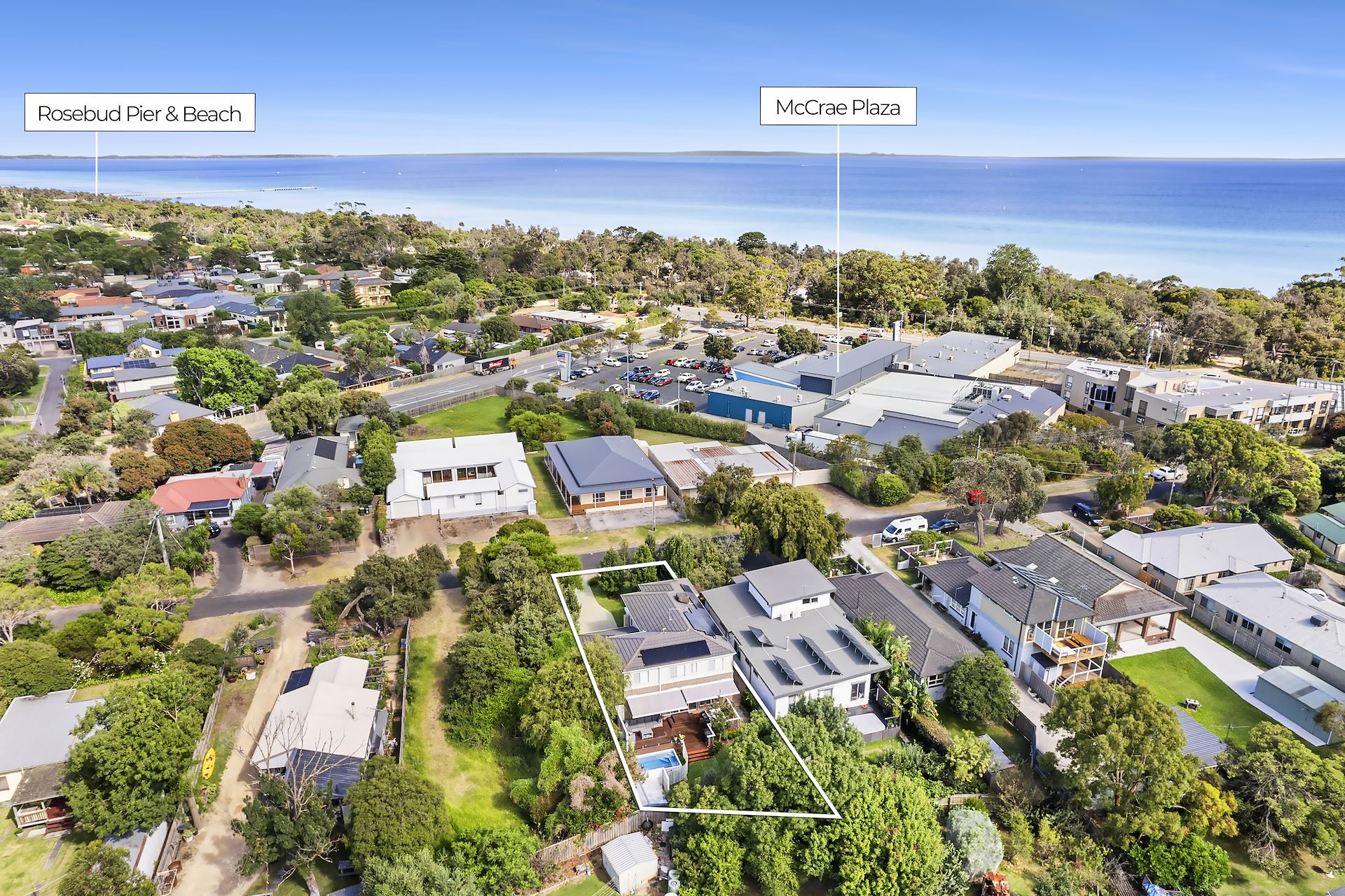 Embrace low-maintenance living in this immaculately presented residence boasting a contemporary coastal aesthetic and coveted beachside location. The home features a spacious open-plan with floor-to-ceiling windows, an expansive deck and a lush backyard with heated plunge pool for the ultimate in indoor-outdoor relaxation. Offering a master bedroom downstairs and 4 bedrooms, a study nook and lounge upstairs with views to Arthurs Seat. Located in a quiet street, just a short stroll to McCrae Beach, buses and Plaza shops, with cafés, local attractions and the Peninsula freeway nearby. - 6-star energy rating, 6kW solar system, ducted vacuum, wall panelling - Heated plunge pool and expansive deck with automated shade cover - Open plan living/dining with floor-to-ceiling double-glazed windows - Stone island kitchen, 900m Technika upright, walk-in pantry, dishwasher - Master bedroom with walk-in robe and ensuite downstairs, powder room - 4 beds with BIRs, study nook and lounge upstairs - Family bathroom with shower, bath and wall-hung vanity, separate WC - Sunny laundry with fitted cabinetry and glass sliding door - Lush rear garden with lemon and olives trees, passionfruit vine - Engineered timber flooring, tiled bathrooms and carpeting upstairs - Ducted heating and evaporative air-con, Jetmaster gas log fireplace - Remote double garage with internal access, exposed aggregate driveway