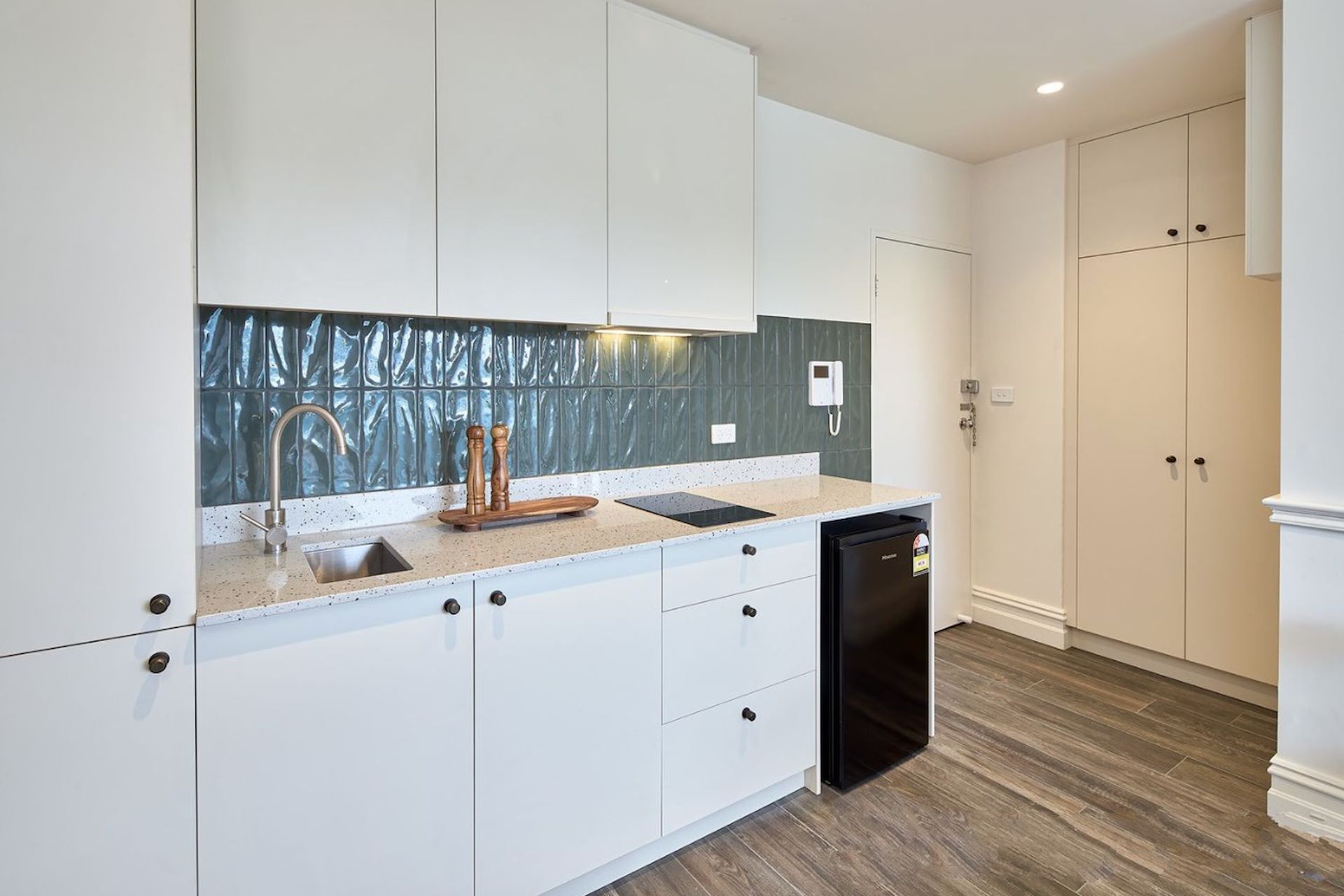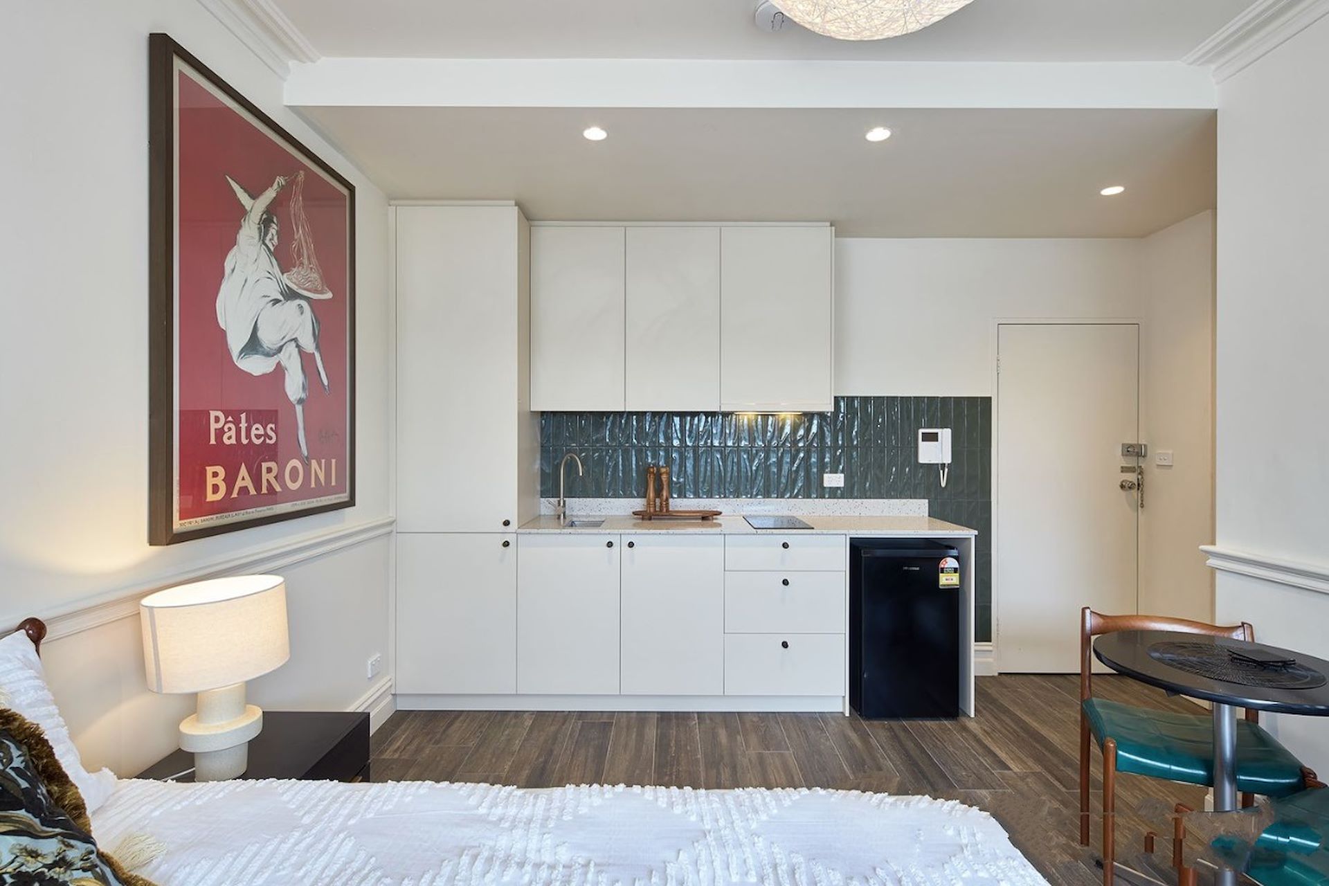 This beautifully transformed European style studio is in the vibrant and eclectic heart of Cosmopolitan St Kilda. Generously proportioned, with a stylish flair, includes high ceilings with water glimpses from an outdoor balcony, this incredible property is offered furnished and ideal for an Executive lifestyle. Enjoying a privileged position atop Acland Hill, just a short stroll from Fitzroy Street's exciting lifestyle vibe, the city light rail, Espy Hotel, Luna Park, Palais Theatre, Albert Park and Lake, Catani Gardens, and best of all St Kilda Beach and the foreshore promenade. Featuring: Incredible studio space showcasing the beautiful floorboards, ornate ceiling rose, built in wardrobes and French doors onto the quaint balcony with views across St Kilda and the Bay. - Stunning kitchen with Caesarstone benchtops, electric cooking, and plenty of cupboard space. - Double Antique mirrored doors open up into a stunning European style bathroom with traditional handheld tapware with mosaic tiling. - Offered furnished as pictured, including microwave, television, split system heating and cooling, shared laundry facilities, security intercom.