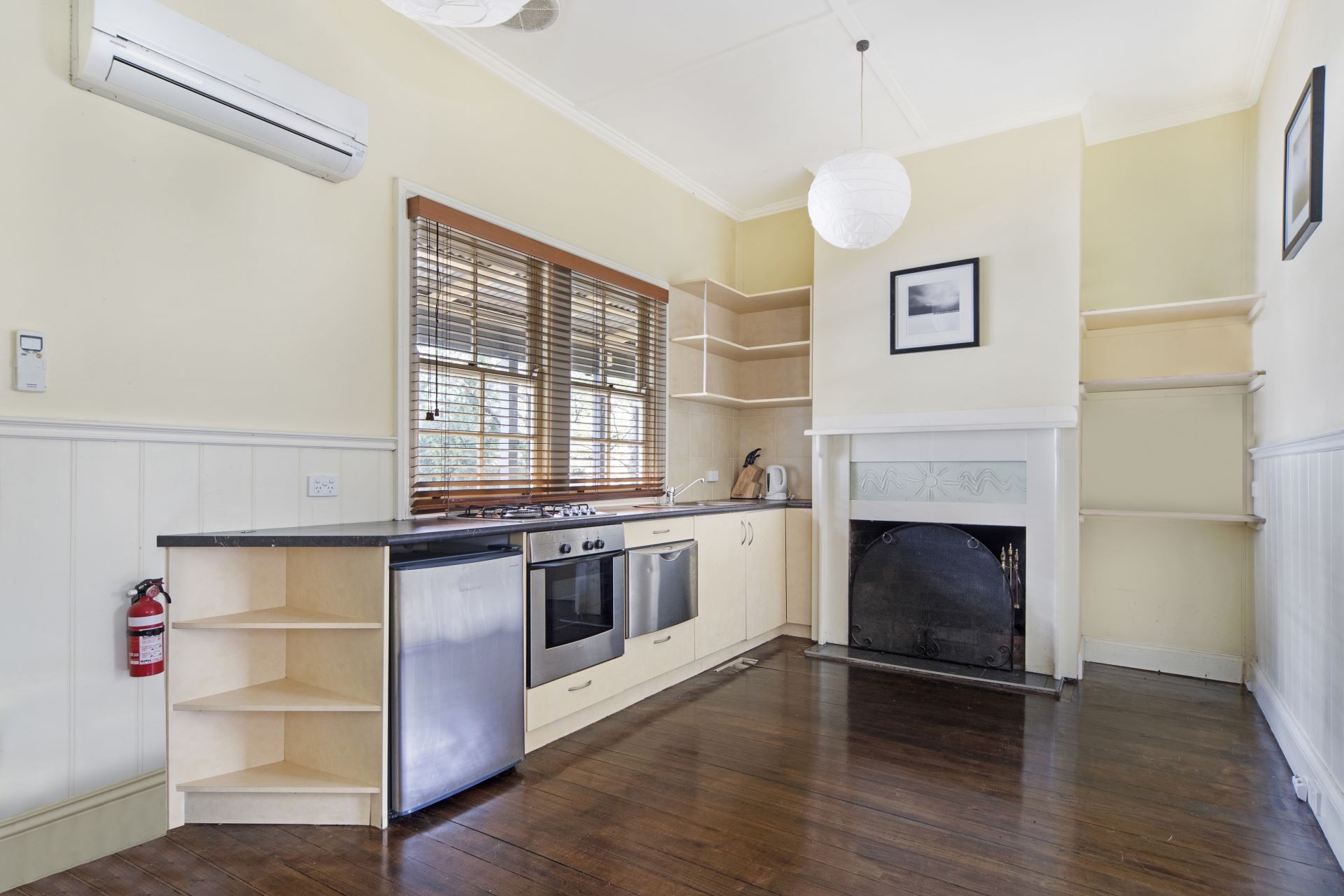 - 2 bedrooms, both with robes and fitted with ceiling fans - Master Bedroom with spa - Open plan kitchen and dining areas - Kitchen features split system unit, open fireplace, floorboards, and stainless steel appliances including gas cooktop, electric oven, mini fridge and small dishwasher - Off-street parking - Central heating - In quiet location Inspections as advertised