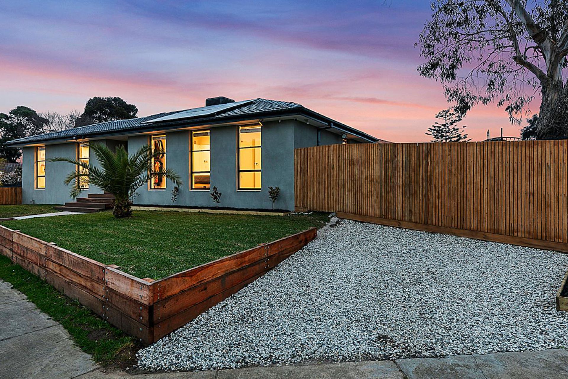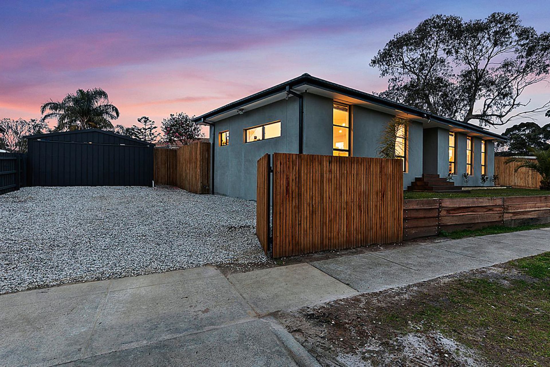 This beautifully renovated 3 bedroom home with a polished cement render is located only a short walk to both local primary and secondary schools, close to shops, walking trails and transport. - Three bedrooms with open built-in robes - A Family bathroom is tastefully presented with black and white stone tiled tones, double shower heads and separate deep bath, a peaceful sanctuary when it's time to exercise self-care - Second separate toilet and vanity available for additional family needs or for guests staying overnight. - large living room and dining room with Tasmanian Oak floors that flows through via sliding doors to the outdoor entertaining area with merbau decking and underground lighting, an entertaining mecca leaning itself perfectly for fun-filled days with family and friends. - open plan kitchen with stone bench tops and separate butler's pantry, - Other great features of this home include, a separate laundry, Split system heating / cooling ,Solar panels, outside has two access entry points one that leads to a tradie's dream, a large, galvanized shed to the left of the home and a second entry to the right that's accessible and large enough to store another car, caravan and or trailer.