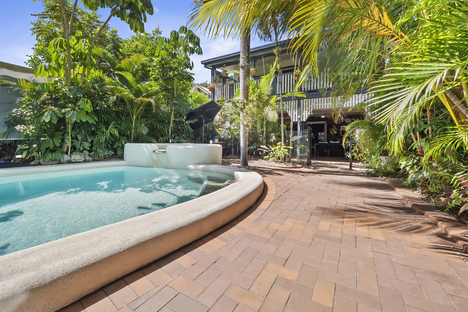 Situated at the quiet end of Draper Street, on the doorstep of Cairns CBD, this character filled Queenslander enjoys two spacious, self-contained levels, plus multiple al fresco areas, sparkling pool and off street parking. The expansive floor plan offers flexibility for those looking to accommodate extended family, dual living, or airbnb accomodation. Oriented to capitalise on prevailing breezes, the layout features extra high [3.4m] timber lined ceilings and traditional accents. A delightful rear deck over looks a sparkling resort style pool & spa with cooling waterfall, whilst taking in peaceful area views. Downstairs enjoys an extra-large covered patio area which opens out to the the pool and tropical garden. Integrated via a substantial internal staircase, the generous proportions and retention of traditional features afford this well-presented property character, space, privacy and flexibility. - Traditional features throughout: timber floors, fret work, panelled timber walls, casement windows with screens - Spacious, integrated living upstairs and down, with internal staircase - 3 large bedrooms +study/nursery upstairs, with robes, one with walk in robe - Contemporary kitchen, open plan living, unfold to rear deck & mountain vistas - Downstairs features gorgeous timber floors, 2 bedrooms, plus large open plan living, kitchen & covered patio - Fully fenced, with rear access via Archie street with carport / off street parking - Sparkling resort style pool complete with spa and water feature - New roof, plumbing and electrical upgrades through out + generous amount of storage - Premium location close to school [within the Cairns State High School catchment zone] transport, hospital, and CBD.