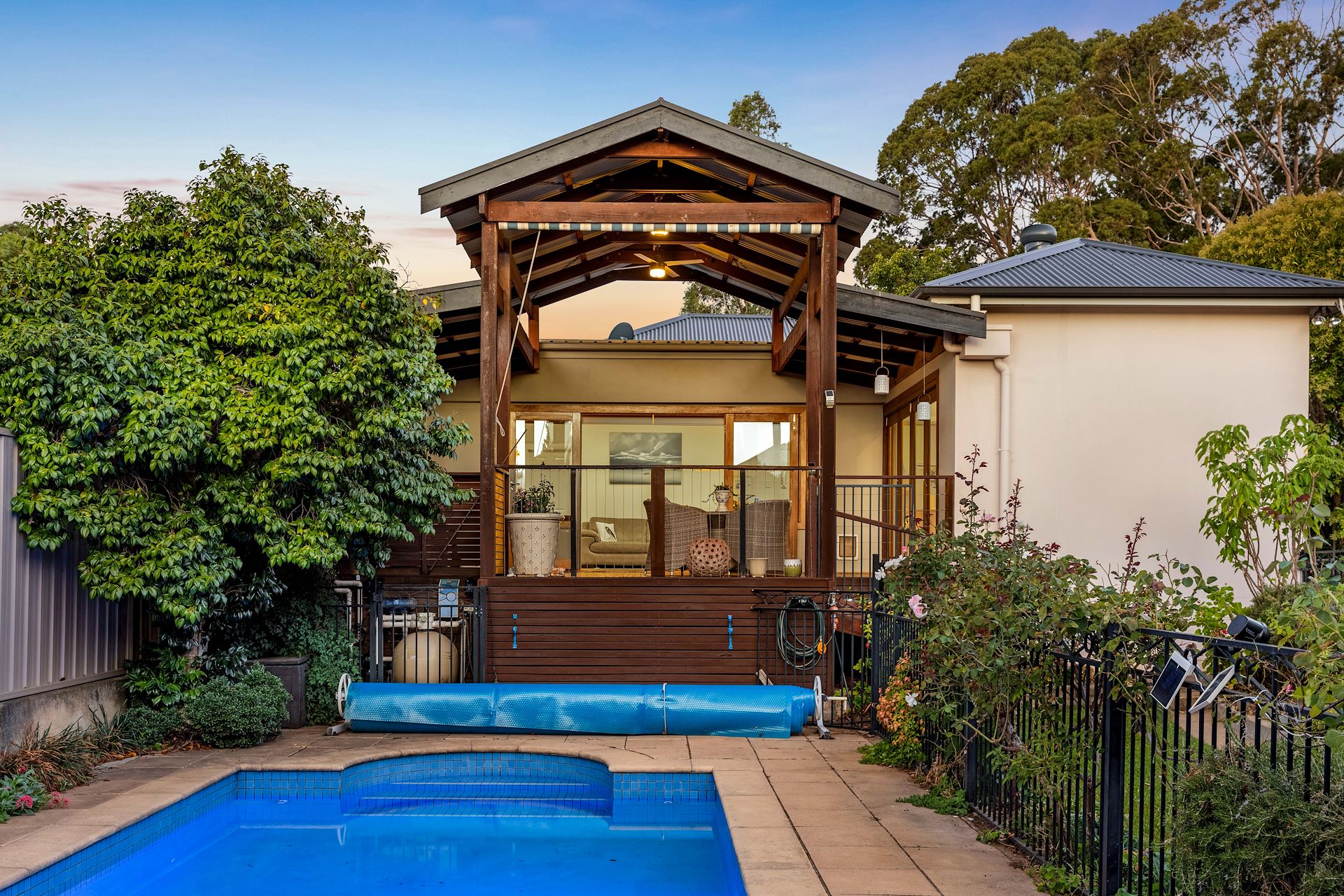 What better place for a wonderful family home than this lush and leafy eastern suburbs locale, with a beautiful park and playground directly opposite! Embracing families and professionals with a warm and welcoming vibe, this charming C1948 property offers three enchanting bedrooms, large formal dining and lounge rooms, two sleek bathrooms and a sensational kitchen and family room extension. This captivating family home on a beautifully presented 673sqm allotment features gorgeous gardens wandering and winding their way around the sparkling inground pool. Above this beautiful vista in a serene setting sits an amazing timber deck with a pitched roof pergola, elevated for that on-top-of-the-world feeling. Indoors a crisp paint palette contrasts with exquisite timber flooring to create the fresh feel while highlighting many elegant original features such as leadlight windows and ceiling roses, romantic lighting and a gorgeous fireplace. Plantation shutters add timeless appeal while the classic contemporary kitchen will delight home cooks with stunning style, stainless appliances, abundant storage and an island bench with breakfast bar. Further highlights include: A carport and a single garage with roller door Split system heating and cooling and ceiling fans Big living areas, formal dining open to formal lounge via French doors Vast family room flowing through to the outdoor entertaining area Updated bathrooms featuring vessel sinks Three luxurious bedrooms with built-in robes Potential for a fourth bedroom if you converted the dining room Master bedroom features a built-in robe, ceiling fan, ensuite and a walk-in robe combined with a study nook Rear bedroom opens directly to the timber deck Uniquely decadent outdoor entertaining with immense space and tasteful style Solar heated, salt water swimming pool 15.24m width x 44.19m depth The prestigious location boasts abundant local parks and reserves, sporting facilities, Burnside Swimming Pool and Burnside Village, boutique shops, local cafes and restaurants and is zoned for Linden Park Primary School and the highly acclaimed Glenunga International High School. With easy access to a plethora of top private schools including Seymour College, Loreto College, St Peters Girls and Pembroke, this is the perfect family home. RLA 285309