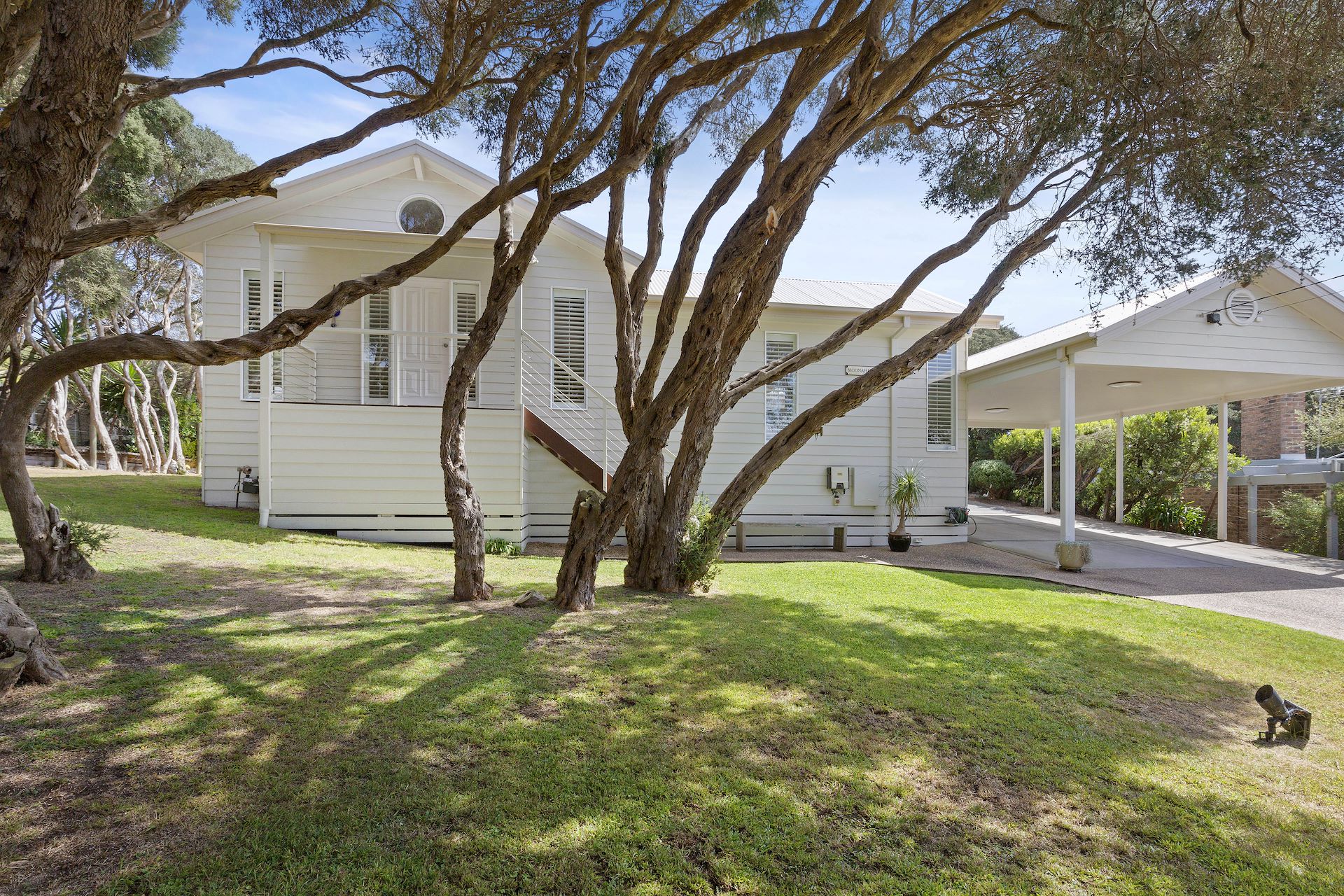 'Moonah Views' Owner built to superb standards and on the market for the very first time, this spacious seaside oasis applauds coastal living with its light and laidback ambience and enviable positioning literally steps to the oceanfront tracks leading to Rye's spectacular surf beaches. Completely private behind tall gates on an enchanting private allotment peppered with moonah trees, the residence immediately impresses with soaring cathedral ceilings, hardwood flooring and multiple sets of sliding glass doors uniting indoors and out. Suited to sea changers and holidaymakers alike, householders are spoiled with two sundrenched living spaces and a contemporary kitchen with stone benchtops, an Asko dishwasher, Blanco oven, microwave and gas cooktop, and a French-door fridge with ice dispenser. Glass doors open to a vast central barbecue area with a louvre pergola and elevated cocktail deck, providing the perfect setting for sunset drinks overlooking the coastal panorama to Arthurs Seat. Positioned within its own wing, the master bedroom boasts a vaulted ceiling, dual built-in robes, a private ensuite and direct access to the sundeck in this superbly customised layout, which includes a family bathroom and a powder room. A short walk to 16 Beach General Store and an easy drive to hot springs, golf courses and Rye town centre, the property comes with ducted heating, a wood heater, two split-systems, ducted vacuuming, Fisher & Paykel washing machine and dryer, 16 solar panels, a rear deck, outdoor shower, double carport and lock-up garage (all furniture negotiable). Disclaimer: Whilst every care has been taken in preparing the property information, it is to be used as a guide only. Please refer to the appropriate legal documentation to complete your due diligence.