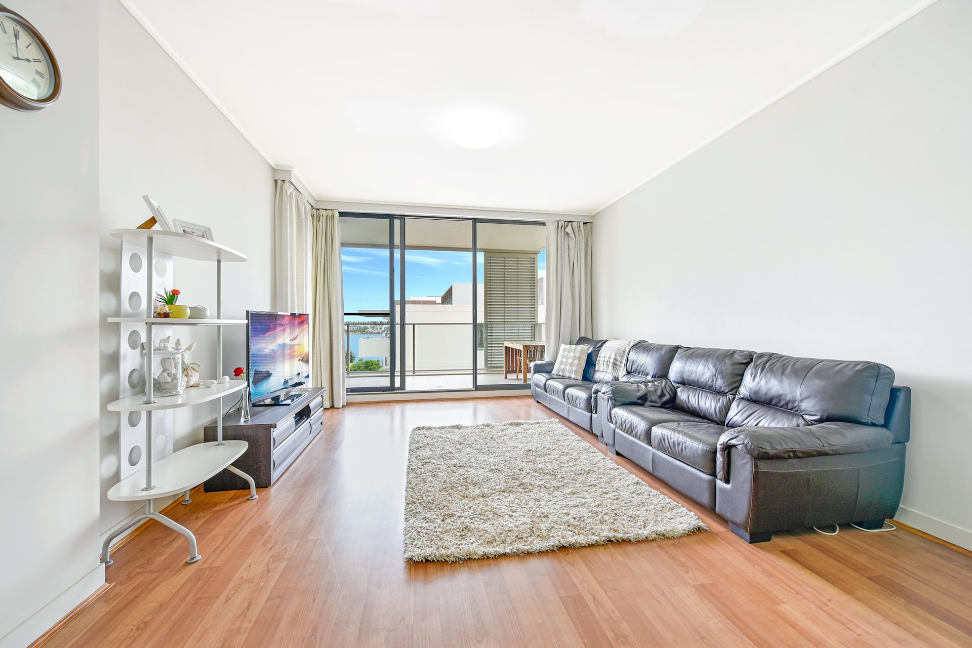 Built by Mirvac, this stunning two bedroom apartment is flooded with natural light with vast open plan living and dining area. Switch off from the busy City-lifestyle and enjoy the water glimpse off the covered balcony. Its location is opposite Rhodes Shopping, only a minute walk to the train station, cafes, restaurants and waterside parklands. - Vast open plan living and dining area opens to covered entertainers' balcony - Family gas kitchen with stainless steel appliances, breakfast bar, ample storage - Mirvac built, premium fittings and finishes throughout, ducted air conditioning - Low maintenance floorboards throughout, two good sized bedrooms + study - Master bedroom with private ensuite, cozy covered balcony with fly screens - Quality bathrooms with floor to ceiling tiles, main with separate bath & shower - Water glimpse off the balcony, separate internal laundry, well maintained home - Security building with intercom, basement parking plus storage with lift access - One minute walk to train station, major Shopping Centre, cafes and restaurants