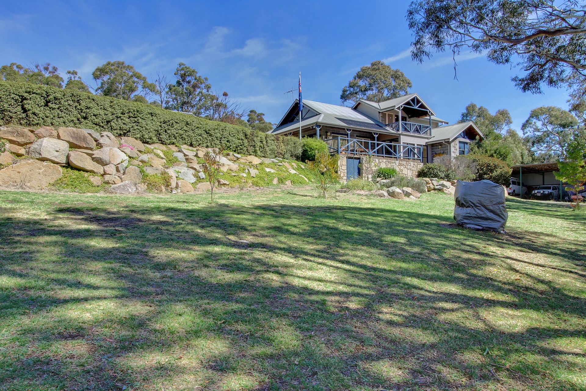 Escape to this stunning rural retreat, nestled on a sprawling 5-acre property just a short drive from Cooma. The main residence boasts three spacious bedrooms, including a master suite with an ensuite and walk-in robe. Enjoy the warmth of a wood fire in the living room, or unwind in the family bathroom's clawfoot bath. The Tasmanian oak kitchen is a chef's delight, featuring a 5-burner gas cooktop, electric oven, and dishwasher. The home's elegant design includes timber cathedral ceilings and stained glass lightshades, creating a warm and inviting atmosphere. Ducted gas heating ensures comfort year-round, complemented by a 6.6Kw solar system for energy efficiency. Outside, a wrap-around undercover deck offers the perfect spot to entertain or simply soak up the tranquil surrounds. The guest house is a haven in itself, with a large bedroom, mirrored built-in robes, and a timber-lined mezzanine loft. The modern kitchen and open-plan living/dining area provide a comfortable retreat, complete with a wood fire and reverse cycle heating/cooling. For convenience, there's a laundry, storage area, and a handicapped accessible bathroom and doors. (*STCA) The property is beautifully landscaped, surrounded by rock walls and a gravel driveway, adding to its charm. With a garage, workshop, and ample storage options, this property offers a rare opportunity for luxurious country living with the added benefit of a guest house. Don't miss your chance to make this your own private sanctuary. The Home: - Sold furnished - Master bedroom with ensuite & walk-in-robe - Wood fire and ducted gas heating - Family bathroom with clawfoot bath - Tasmanian oak kitchen - Gas & electric hot water - 6.6Kw Solar - Surrounded by rock walls, paving & gravel driveway The Guest House: - Sold furnished - Large bedroom with mirrored built-in-robes and ample storage - Timber lined mezzanine loft - Open plan lounge/kitchen/dining - Wood fire with hot water wetback - Reverse cycle heating/cooling The Property: - Fenced into three paddocks - One paddock with dam - Bore connected to 20,000L concrete tank - Over 120,000L water storage - 3 Bay machinery shed - Raised vegetable beds - Established fruit trees - Mature native trees & shrubs - Excellent internet speed Disclaimer: Disclaimer: All information regarding this property is from sources we believe to be accurate, however we cannot guarantee its accuracy. Interested persons should make and rely on their own enquiries in relation to inclusions, figures, measurements, dimensions, layout, furniture and descriptions.