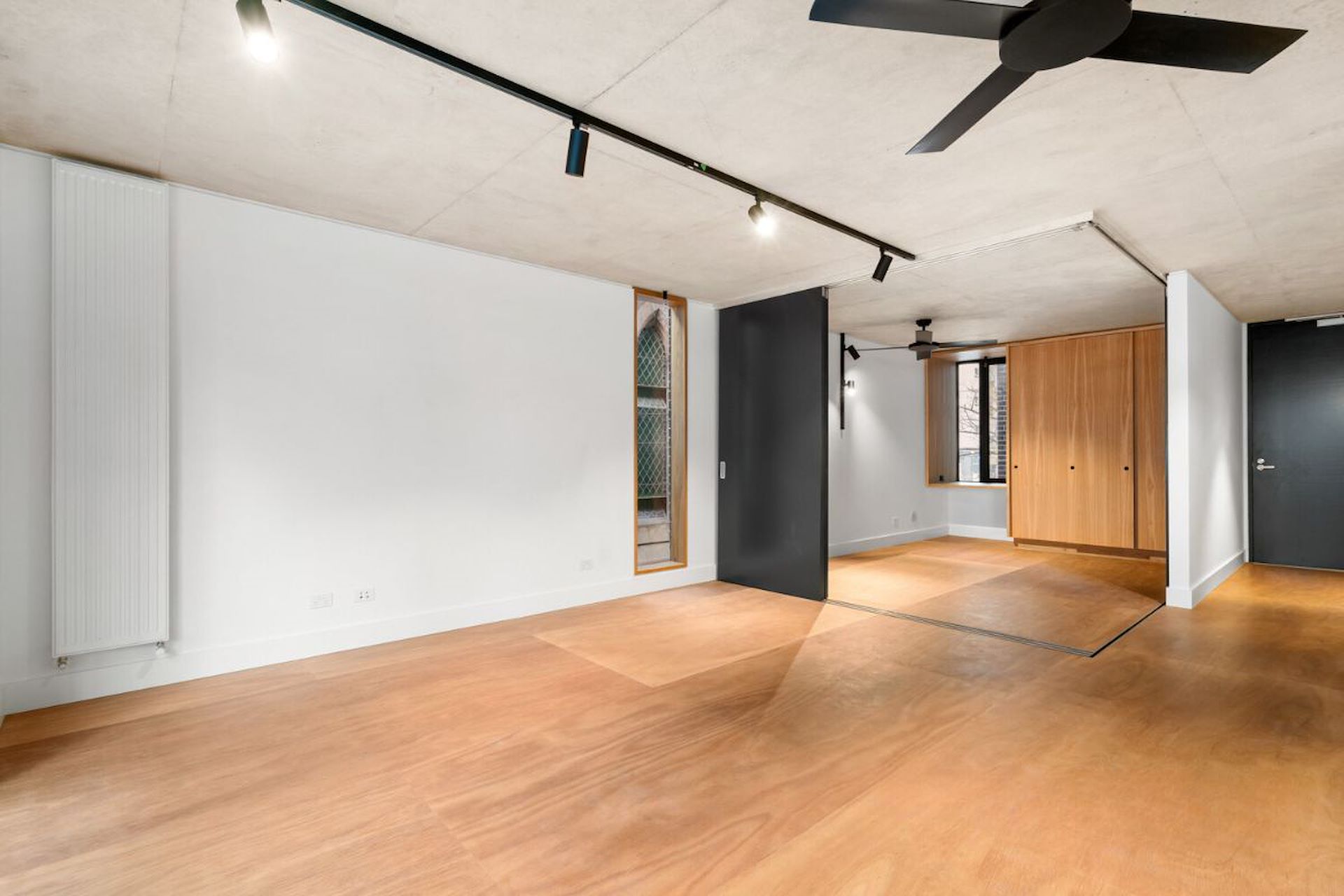***Fridge Included*** Located in leafy Napier Street amid a spectacular 144 year-old former Church, this highly coveted address offers residents the chance to live moments from vibrant Gertrude Street, wander down to Brunswick and Smith Street's wonderful array of restaurants and bars and public transport directly into the CBD, this value-packed property is in a class of its own. The award winning Kerstin Thompson Architects have designed an incredible transformation within the heritage parish hall and adjacent modern building to create an executive apartment complete with exposed timber floors, matte black steel touches and raw concrete ceilings- the perfect blank canvas to make your own unique home. The home's architecturally-designed interior offers an expansive living and dining area complete with floor-to-ceiling, double-glazed solar glass sliding doors leading to a long balcony with Eastern vistas. Gourmet kitchen with state-of-the-art appliances including refrigerator, induction cooking and dishwasher, a huge master bedroom with whole wall of storage and ensuite bathroom, a second large bedroom with BIRs can also double as additional living room or study, a second equally-stylish main bathroom and European laundry facilities complete this brand new market offering. Cleverly designed to keep a consistent temperature for year round comfort, enjoy hydronic heating throughout, ceiling fans, double-glazing, fly screens on balcony doors, window coverings installed post photos taken, secure entry, video intercom, remote-controlled off-street parking for one and storage cage. Be the first to live in this truly inspiring Fitzroy abode- book now to inspect.