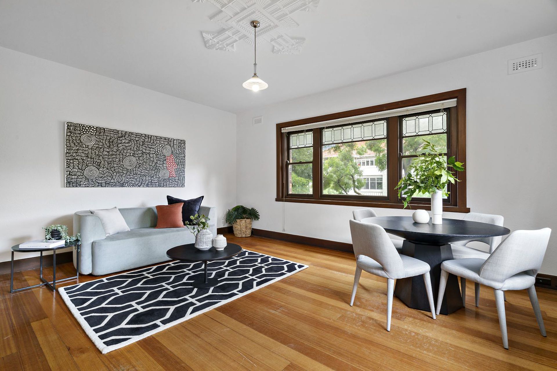 Nestled behind a lush garden enclave and the enchanting facade of 'Wingrove', this magnificent and spacious 2 bedroom, 1-bath first floor Art Deco residence delivers the ideal blend of modern ease and beautiful originality in an exuberant St Kilda location. Captivating with its original ornate ceilings, hardwood floors and curved stucco walls, this light-filled apartment enjoys irresistibly large internal space, with separate living and meals areas, a sensational solid surface kitchen with modern appliances, including a dishwasher, and a huge main bedroom with built-in robes. Exceptional natural light penetrates the entire home, whilst subtle updates within the elegant bathroom create modern ease for now whilst framing a luxurious future if desired. Accessed via front and rear staircases and sharing broad balcony areas overlooking the lush greenery of the surrounding trees, this delightful retreat is complete with ducted heating, intercom, a garage behind secure auto gates, and excellent storage. An icon of Robe Street with its impeccable surroundings and sense of community, Wingrove is just seconds to the vibrant Acland and Fitzroy Street, world-class restaurants, a short stroll to the beautiful St Kilda Foreshore, city-bound transport, including the 96 tram, and iconic attractions, such as St Kilda beach, Esplanade Hotel, Luna Park and the Palais Theatre.