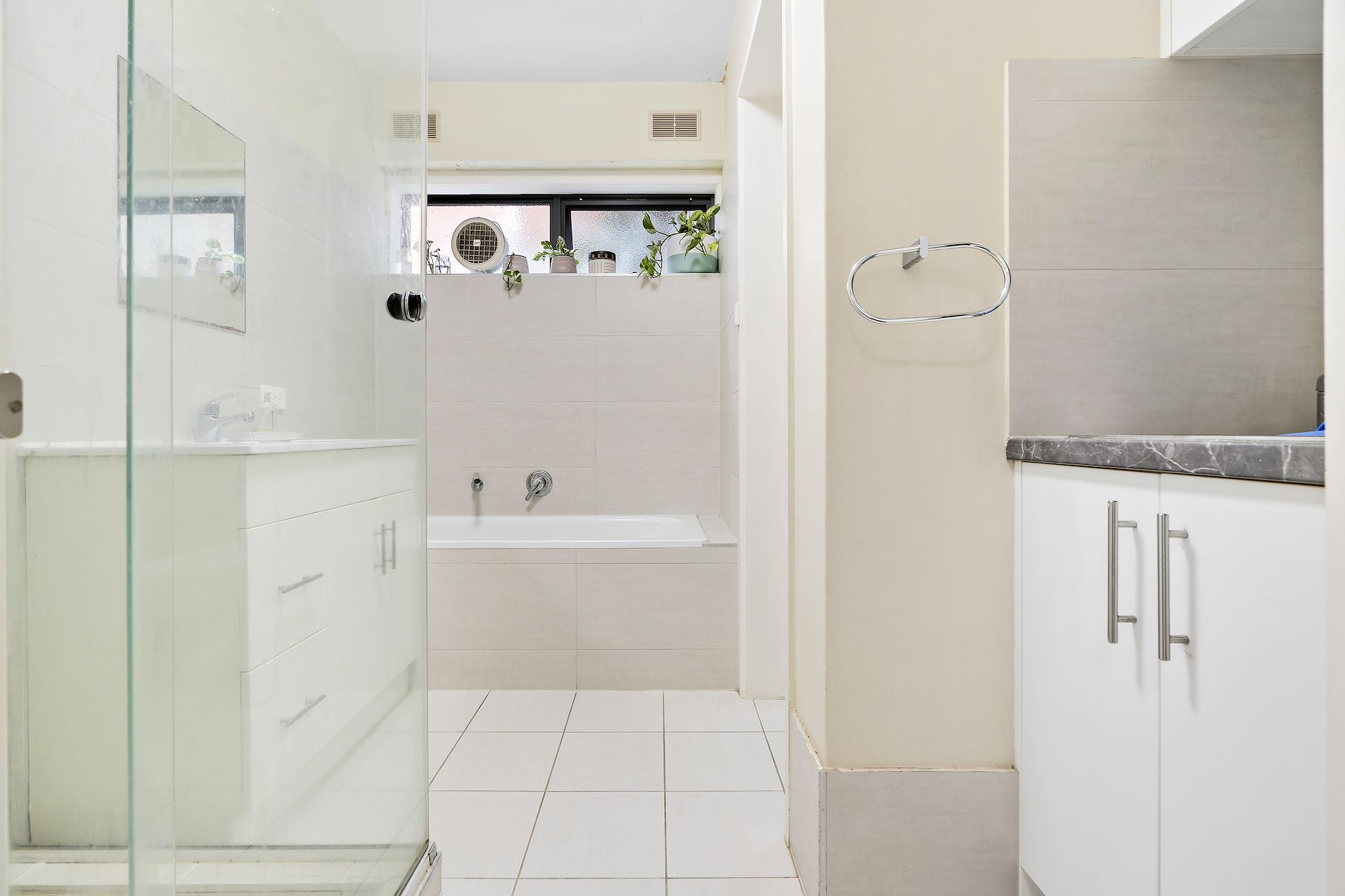 Secure ground floor two bedroom unit in a prime Caulfield location. Comprising: Entrance hallway with double floor to ceiling storage cupboards, huge lounge room with split system heating/cooling and door leading out to small balcony, two double sized bedrooms both with split systems and double mirrored robes. High quality kitchen with stainless steel appliances, loads of storage space and room for a small table. You will be hard-pressed to find a better bathroom with separate shower and bath, large vanity, wall to ceiling tiles and laundry with bench, sink and storage cupboards. Off street parking for one car under carport. Features include: high quality carpet throughout, dual block out blinds throughout, split system in every room and all the trimmings! I've