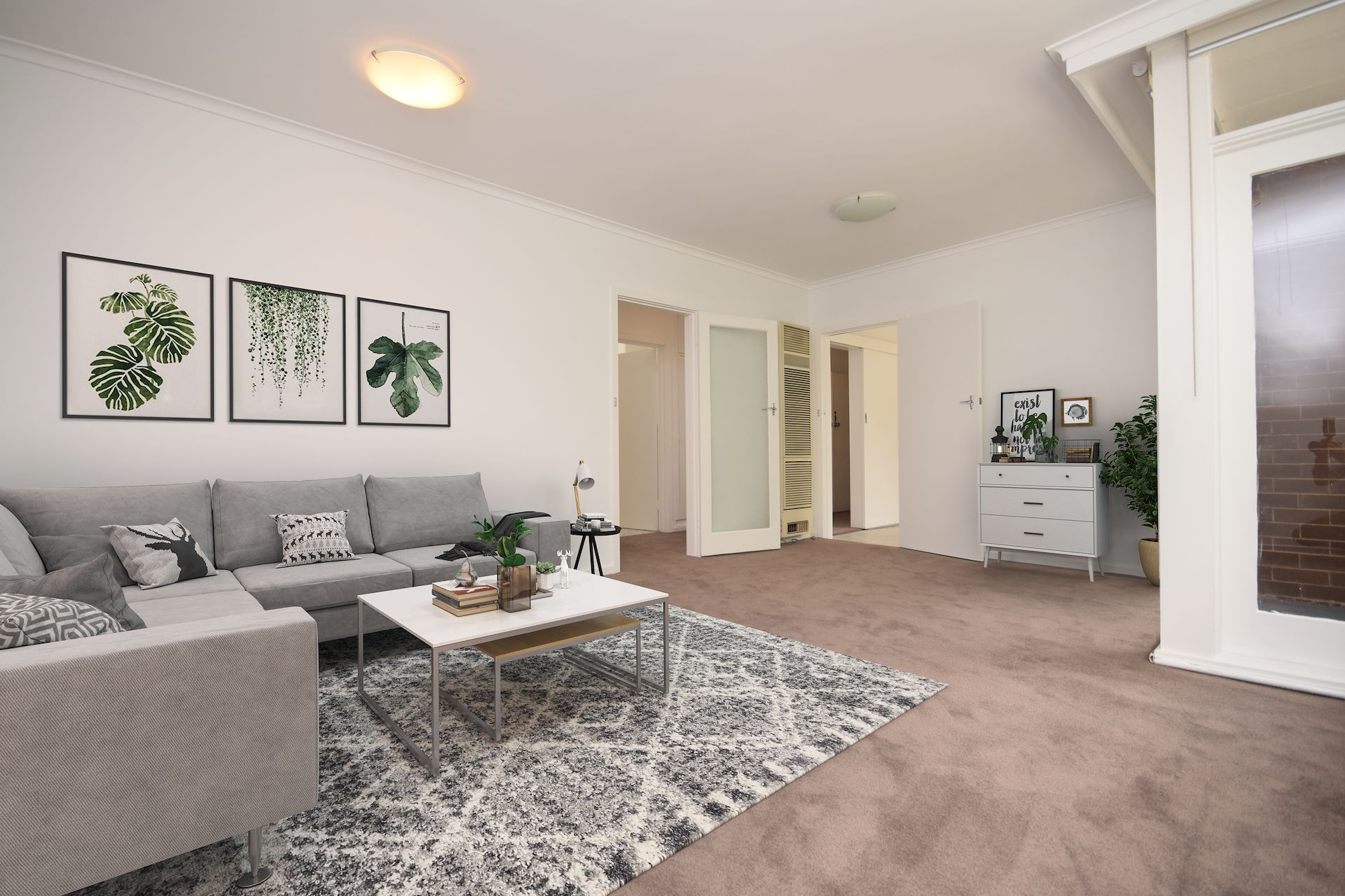 This sun filled filled apartment is on the first floor in a well maintained block of 6 opposite St Kilda's Botanical Gardens and only a stone's throw to the Acland Street cafe precinct and light rail and the beach is a short walk away. It comprises a separate entrance hall, big eat in kitchen, spacious lounge with balcony and toasty gas heating, 2 good bedrooms with built in robes, big bathroom with separate bath tub and separate shower recess and with facilities for your own washing machine, and it has a separate powder room. One car park comes with this apartment.