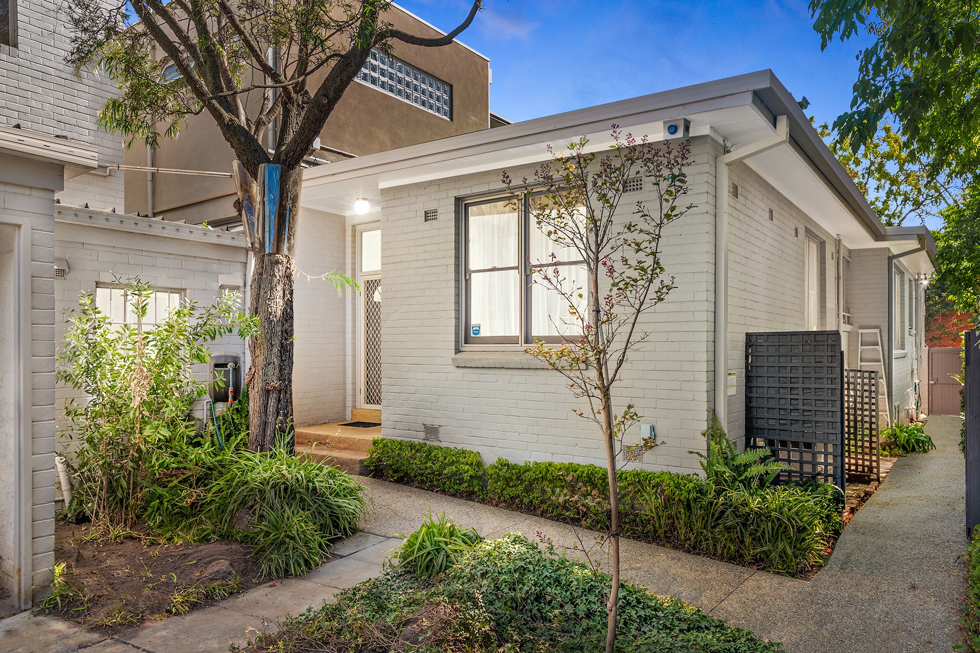 Secretly nestled in quiet Marthas Lane, accessed via Oban Place with seamless entry to Hawksburn Station, this immaculate single level home privately tucked away behind high walls presents a multitude of possibilities for families looking to extend up, downsizers or city base buyers seeking a low maintenance option and everything in between with endless versatility on approximately 150sqm in a sought-after address. Oriented to make the most of the northerly aspect, generous proportions complement warm, inviting interiors comprising an expansive living and dining domain with surrounding trees and foliage providing privacy and glorious dappled light through large windows, spacious kitchen/meals (DW) with abundant storage, two generous bedrooms fitted with built in robes, sizeable bathroom and separate full size laundry. Outdoors doesn't disappoint with an elevated north-west alfresco patio and pergola basking in sunshine, wrap around courtyard shrouded in greenery, garden shed and off street parking on title. Includes ducted heating/aircon. Embrace an enticingly desirable and exclusive lifestyle, footsteps from Hawskburn Station, direct access to Williams Road from the rear, trams and Hawksburn Village shops and cafes moments away plus easy access to leading schools, parks and recreational activities.