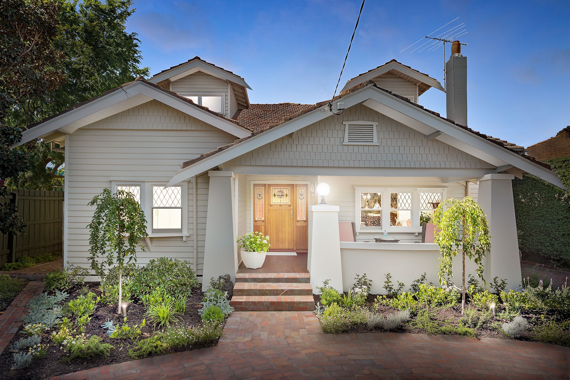 A home where dreams are made, in an exclusive beachside pocket, this captivating 4 bedroom 2.5 bathroom 1923 Californian Bungalow is the picture perfect 'forever family home'. Gorgeous with its herringbone brick paved circular driveway behind dual access auto gates, this mesmerising entertainer enjoys 2 downstairs bedrooms (BIRs) with sumptuous shared ensuite; double glass doors to a beautiful lounge (OFP), and a superb dining room, a stunning north facing open plan living and dining area (gas log fire and 2-storey void), an Italian granite kitchen with Echuca Red Gum breakfast bar; a guest powder room and fitted laundry. The kids will love upstairs with their sun filled gallery style retreat, 2 large attic style bedrooms (BIRs) and a coastal contemporary bathroom. Double doors open to a boardwalk style deck that soaks up the northern sun, and there's a 3m x 3m approx. heated outdoor spa for cooling down in summer and restoring sore muscles in winter; with a paved pathway that creates a race track for eager kids on scooters. Full of warmth and character with its leadlights, high ceilings, picture rails, plate ledges, Baltic pine polished boards and exposed brickwork features, this family favourite provides ducted heating, air conditioning, ducted vacuum, new wool carpet downstairs, loads of storage include amazing outdoor shedding, garden lighting and secure parking via a circular driveway. In this premier location between Hampton Street cafes and the beach, adjoining St Mary's Primary School, and an easy walk to the city train, lovely parks, Hampton Primary School and Haileybury College.