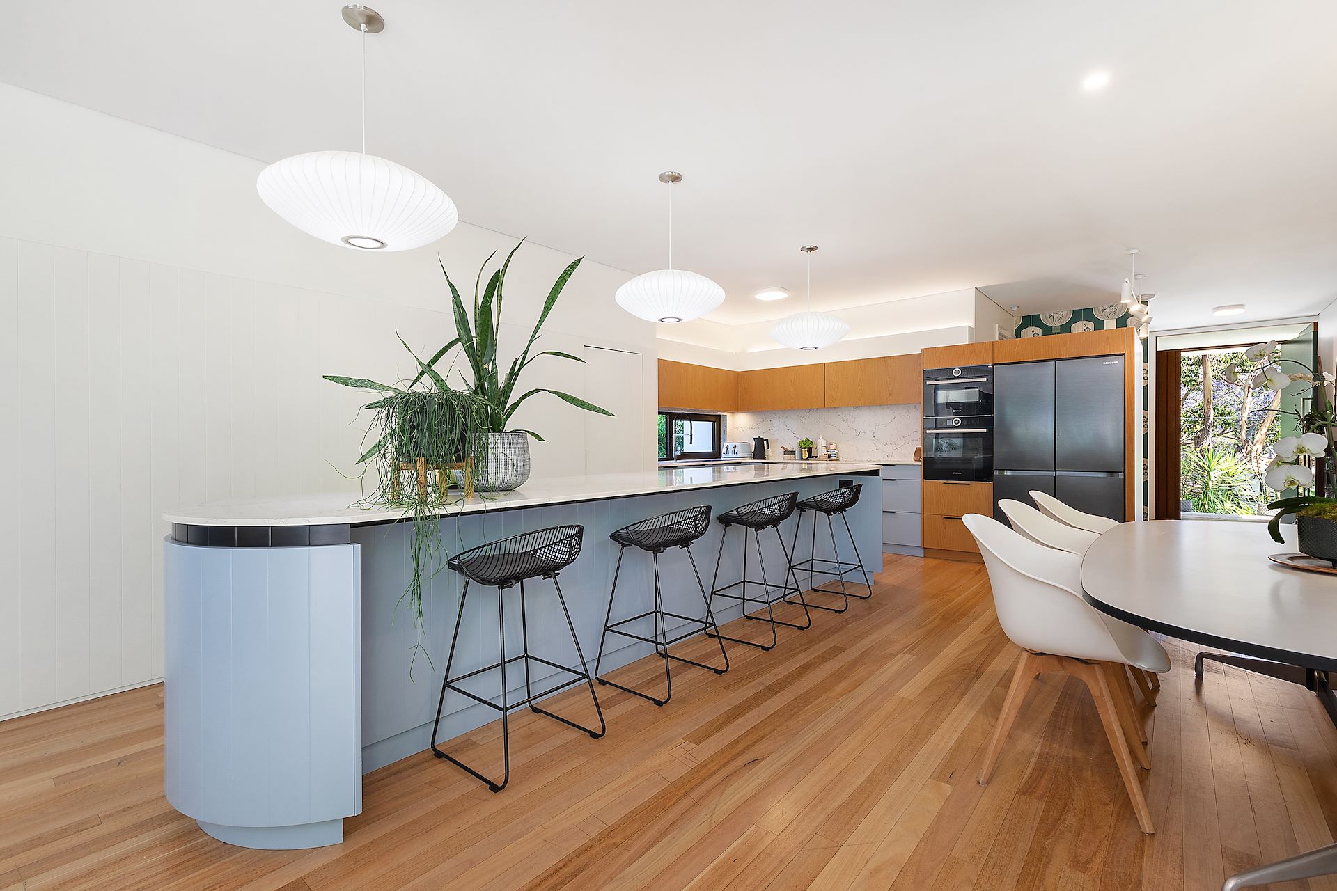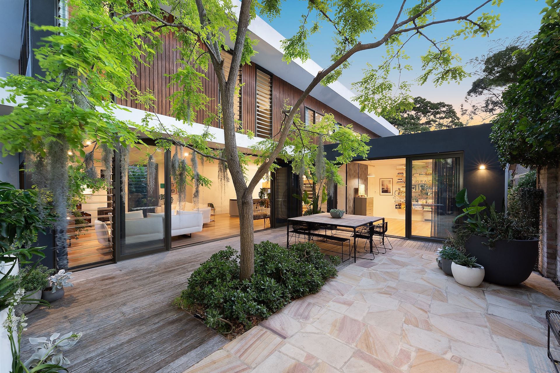 Imbued with an atmosphere of calm and tranquility, this gorgeous modern home in one of Lane Cove's premiere streets assures an idyllic family lifestyle with expansive open plan living zones blending to outdoor entertaining terraces and lavish mature gardens. Capturing natural cross-ventilation, the inspired sustainable design takes advantage of its northeast to rear aspect, while the heavenly backyard is highlighted by a tropical-feel heated pool with sandstone edging. Its serene tree lined street is a stroll from city buses, excellent schools, Lane Cove village shops and dining. - Inviting media room, vast living/dining zone with combustion fireplace - Perfect indoor/outdoor flow to alfresco entertaining and lush backyard - Magnificent renovated kitchen hosts Bosch ovens and curved island bench - Superb home office, light and airy double bedrooms have built-in robes - Deluxe main bedroom has wall-to-wall robes and ensuite with rain shower - Clever use of louvre windows, powder room and stylish bathroom with tub - Two 5,000 Litre below ground rainwater tanks, 18kW solar system - Home battery, electric car charger and a double automatic garage