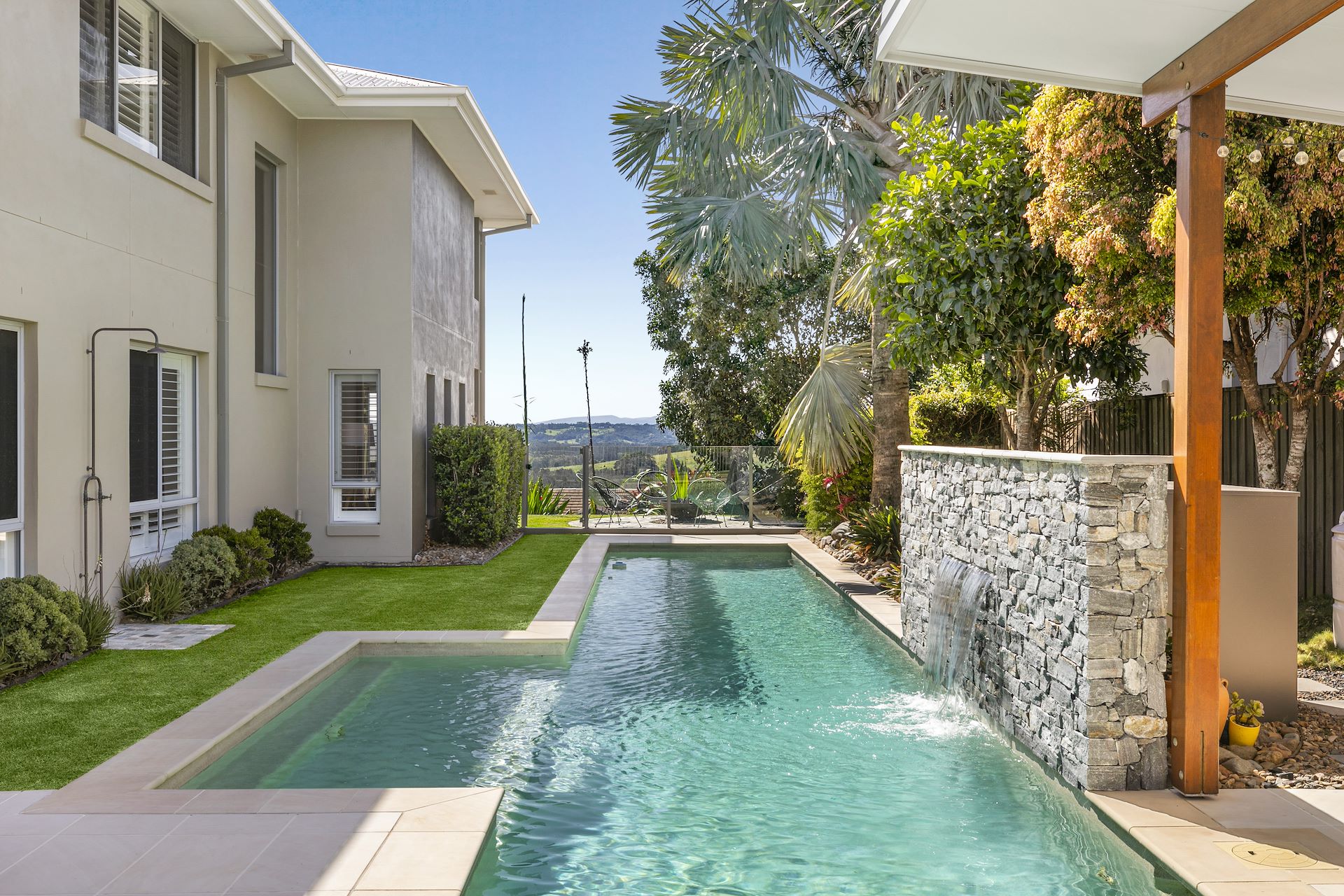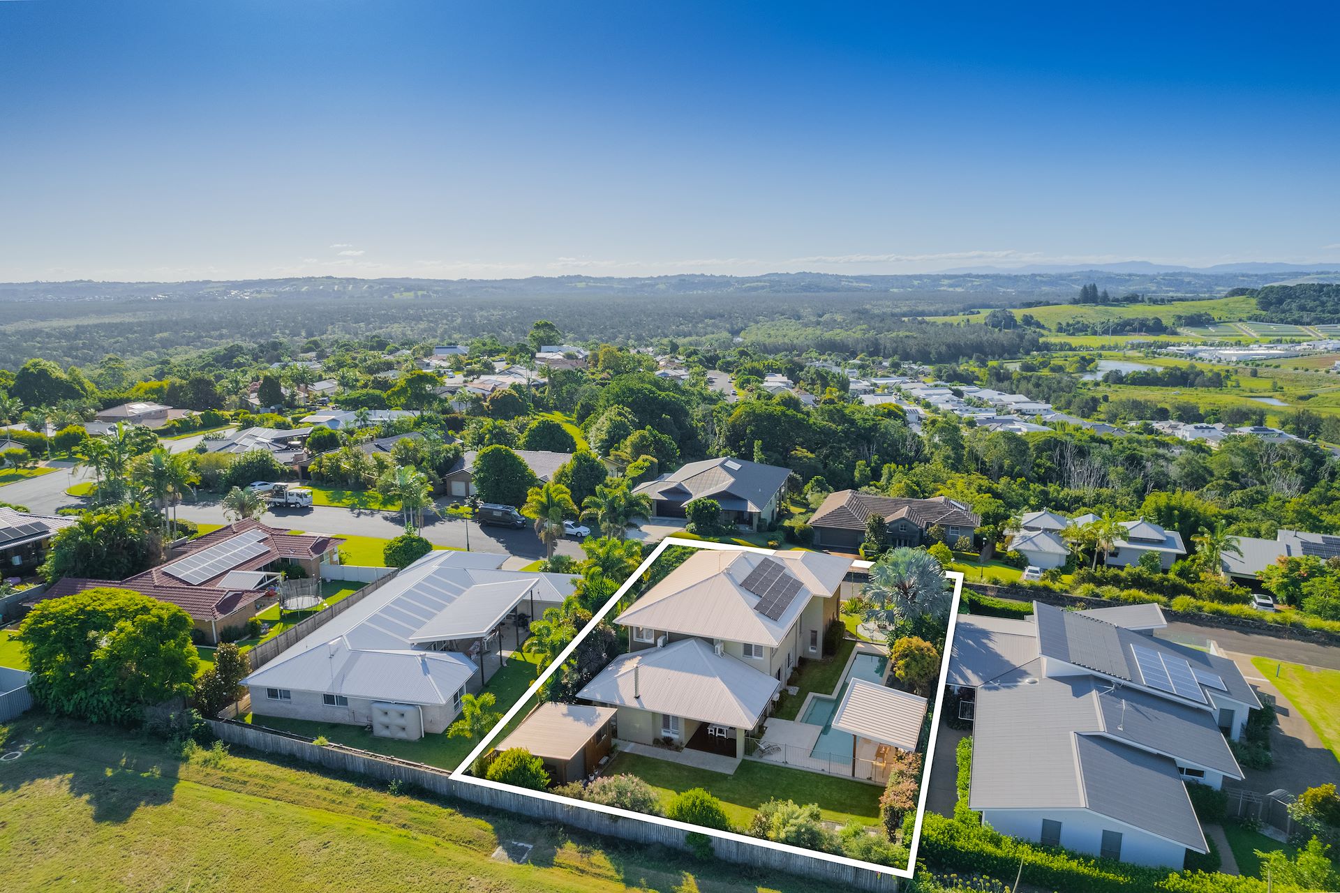 Claiming a prized quarter acre block in one of Lennox Head's most desirable streets, this sensational home defines modern family luxury. You're welcomed beyond a striking elevated facade to a free flowing and grand floorplan blessed by ocean breezes. Endless northern light bathes the interiors, while a selection of living and entertaining spaces cater for every member of the household. Multi-zonal in its clever design, the residence ensures an effortless transition between the indoors and out. You will love the opportunity to relax with family, gather with guests and bask in the panoramic hinterland vistas that surround you. This near new property not only promises a carefree lifestyle from within, but also entices with unbeatable lifestyle appeal. Find the convenience of local shops, grocery stores and daily amenity only down the hill, as well as the laidback surf culture and golden sands of Lennox Head Beach just minutes from your front door. - A choice of formal and casual living zones offer flexibility - Generous entertainers' terrace set by oversized 16m lap pool - Rolling green yard showcases beautifully manicured foliage - Separate workshop/shed or gymnasium with side access through gardens - Vegetable garden and rain water tanks encourage a sustainable lifestyle - Gourmet kitchen featuring large meals bar, wide gas cooktop and oven - Skylit staircase invites up to four oversized and bright bedrooms - Grand master wing adjoins walk-in robe, terrace with hinterland views and full ensuite - Masport wood fireplace, home office or guest retreat downstairs - Expansive driveway leads into a large double garage, parking for 3 cars - Close to scenic coastal walks, schools and stunning look out points - Rare offering in tightly held position, inspect now