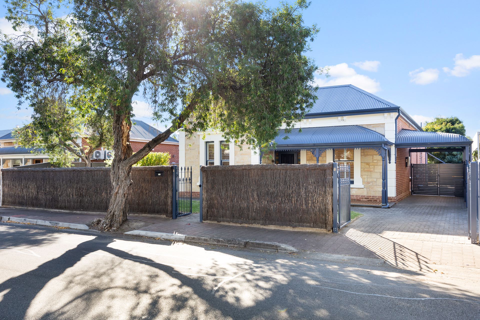 Embark on a journey of discovery of urban living with a touch of tranquillity in this stunning Sandstone Villa in the heart of one of Parkside's most desired treelined streets, boasting a prestigious and perfect blend of modern convenience and timeless charm, this beautiful property offers a serene escape just moment's away from the vibrant pulse of the city. Circa 1890, recently and tastefully renovated this grand home invites you to enjoy 220m2 of living space and set on an outstanding allotment of 687m2 with a valuable north-facing rear aspect. Four spacious bedrooms, plus a study/ kid's playroom, with the master featuring a walk-in wardrobe and an ensuite. This stylish open kitchen and dining space is set with everything you could want, sure to inspire your culinary ventures. The kitchen features a Smeg five-burner gas stove, a Smeg dishwasher, and beautiful overhead cupboards with ample storage space. The seamless designed sunlit dining setting fit for entertaining, with the bay windows offering a beautiful backdrop. The living space adjacent to the dining area, offers a cosy retreat for relaxation and leisure, with a fireplace for those cold winter nights, with two doors to provide its own private space or to open the space to seamlessly integrate with the dining area. For wine enthusiast or those in need of additional storage, this property features a cellar with ample space. Substantial solar system. Step outside and unwind in your own private oasis, with a landscaped garden and an additional courtyard with al fresco, great for entertaining guests amidst the lush greenery!