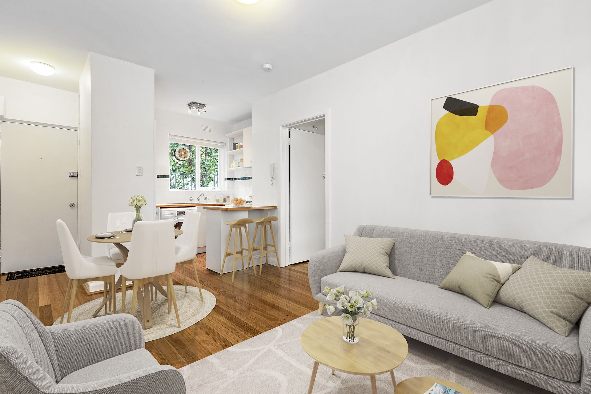 The lifestyle you've always wanted is now within your reach with this beautiful 1950's apartment. This freshly painted apartment is comfortably sized with living room to breakfast bar in the kitchen, high ceilings, floorboards and full-height cupboards in the bedroom. The newly renovated bathroom features modern look tiles with shower over bath and brand new blinds throughout. Extra featured include; Laundry facilities (washing machine included!) Secure entrance Intercom phone off street parking Perfectly located in one of Elwood's finest tree-lined streets just moments to the beach, Acland Street and Ormond Road Village. Please register to view!